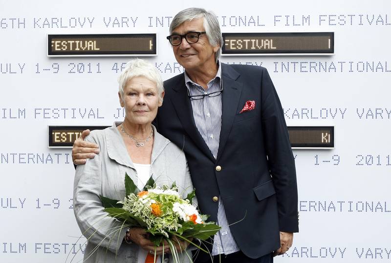 Slavná herečka Judi Denchová zapózovala fotografům. Společnost jí dělal Jiří Bartoška.