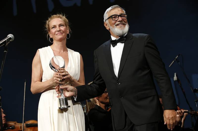 Thurmanová přebrala cenu z rukou prezidenta festivalu Jiřího Bartošky