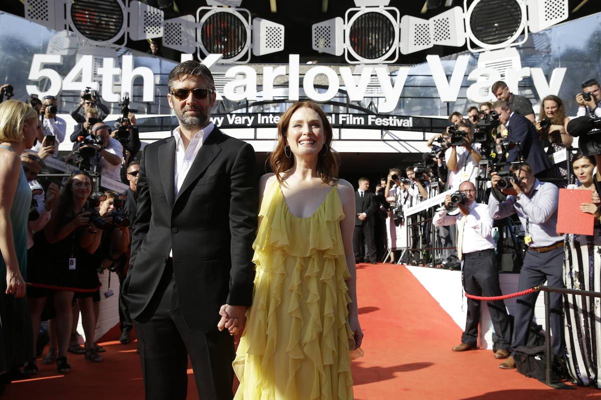 Julianne Moore s manželem Bartem Freundlichem před hotelem Thermal v Karlových Varech
