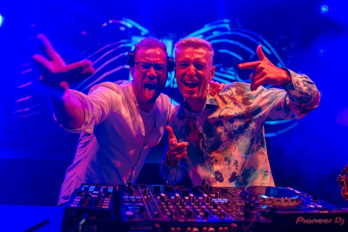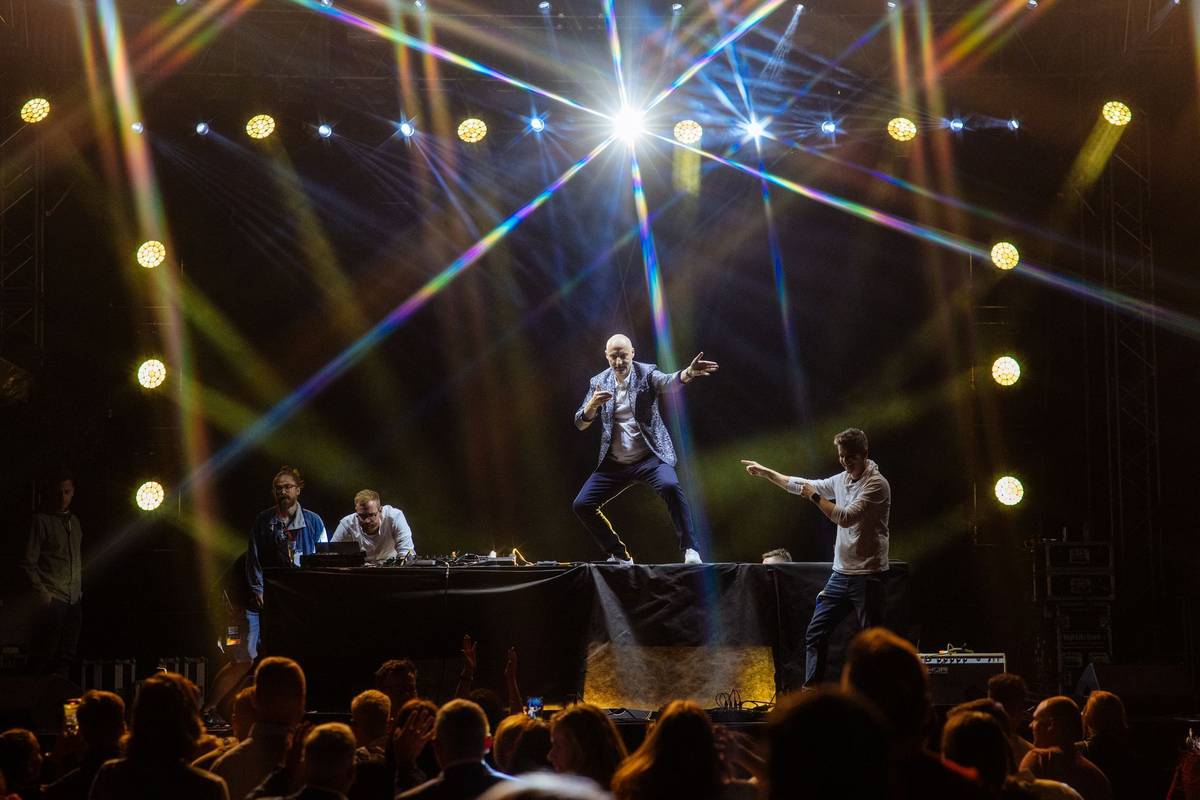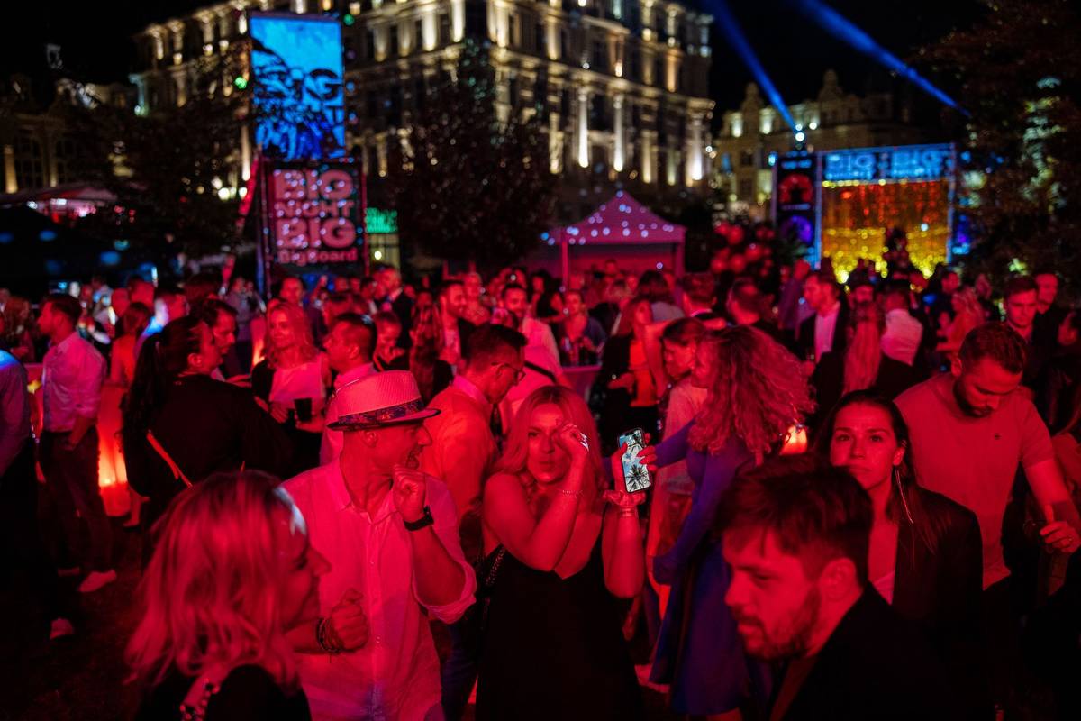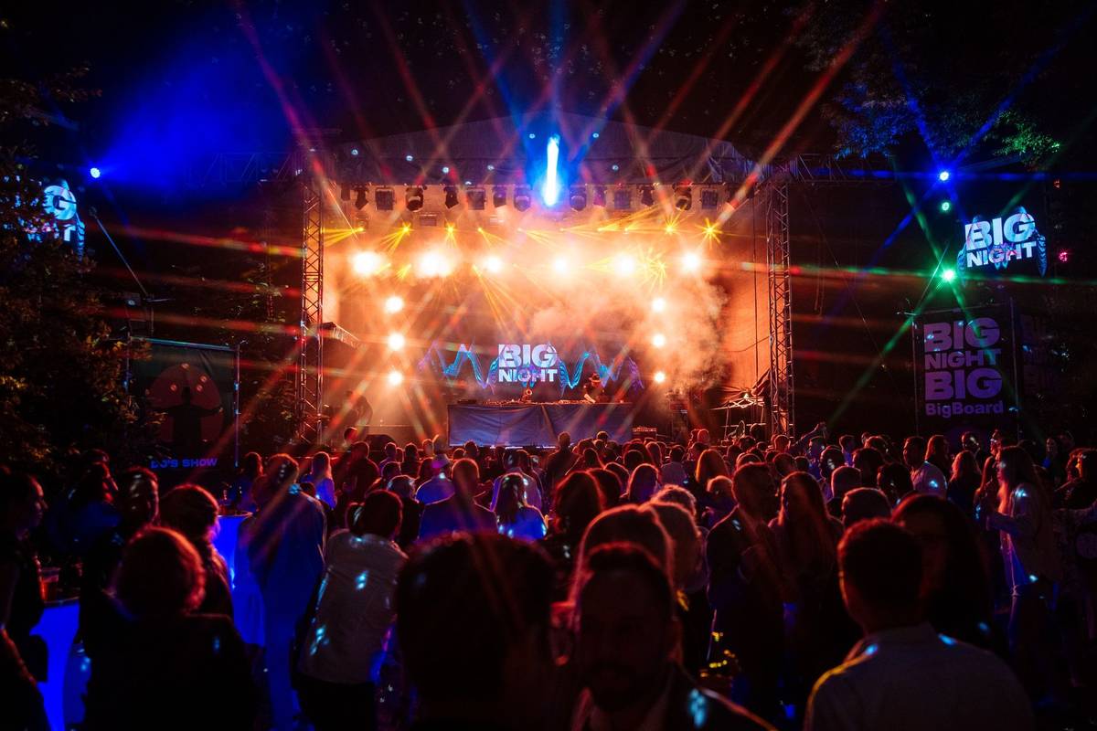 Vpravo je internetová celebrita Kazma, na DJském pultu tančí předseda představenstva Bigboardu Richard Fuxa.