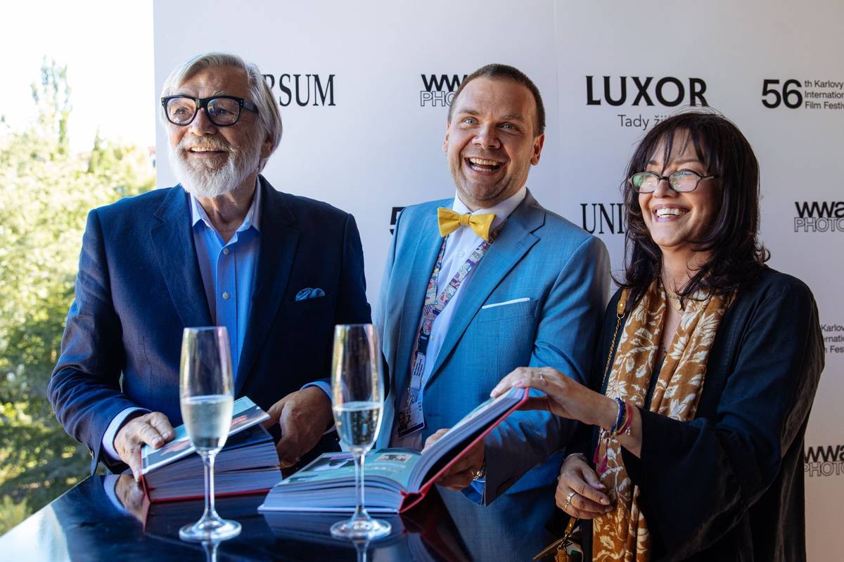 Prezident festivalu Jiří Bartoška, ministr kultury Martin Baxa z ODS a herečka Tereza Brodská.