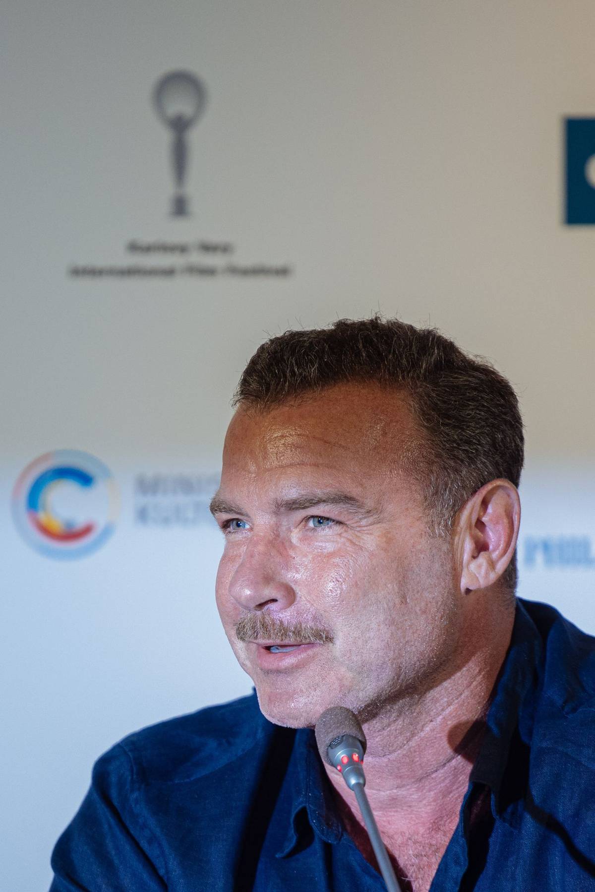 Hollywoodský herec Liev Schreiber, který má ukrajinské kořeny, na festivalu představil svou neziskovou organizaci BlueCheck Ukraine pomáhající zemi napadené Ruskem.