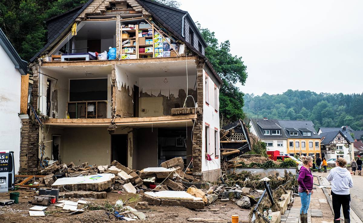 Zničený dům na břehu řeky Ahr.