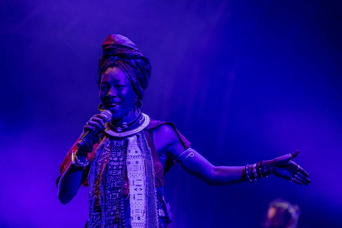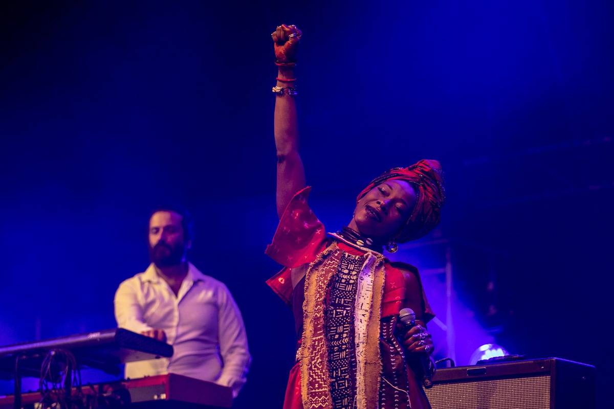 Fatoumata Diawara, vzadu vlevo klávesista Arecio Smith.