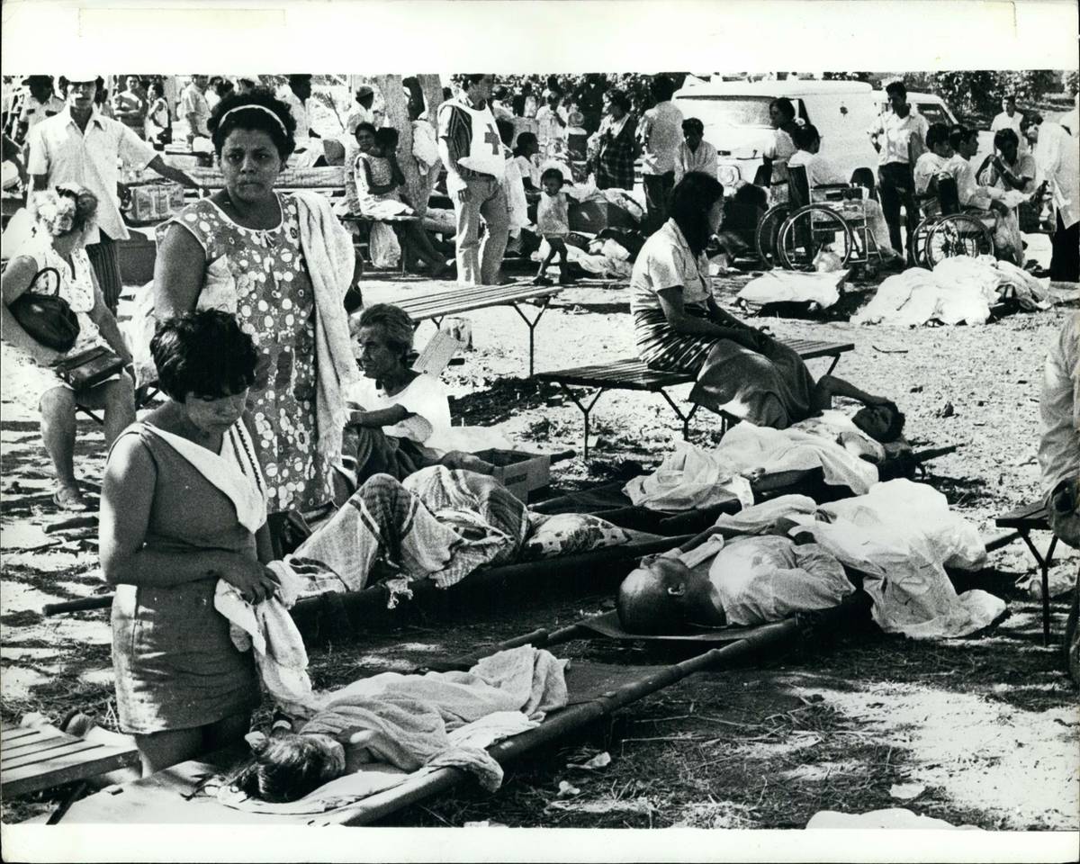 Týden po zemětřesení z 1. ledna 1973: Na ulicích Managui se členové rodin starají o své zraněné příbuzné.