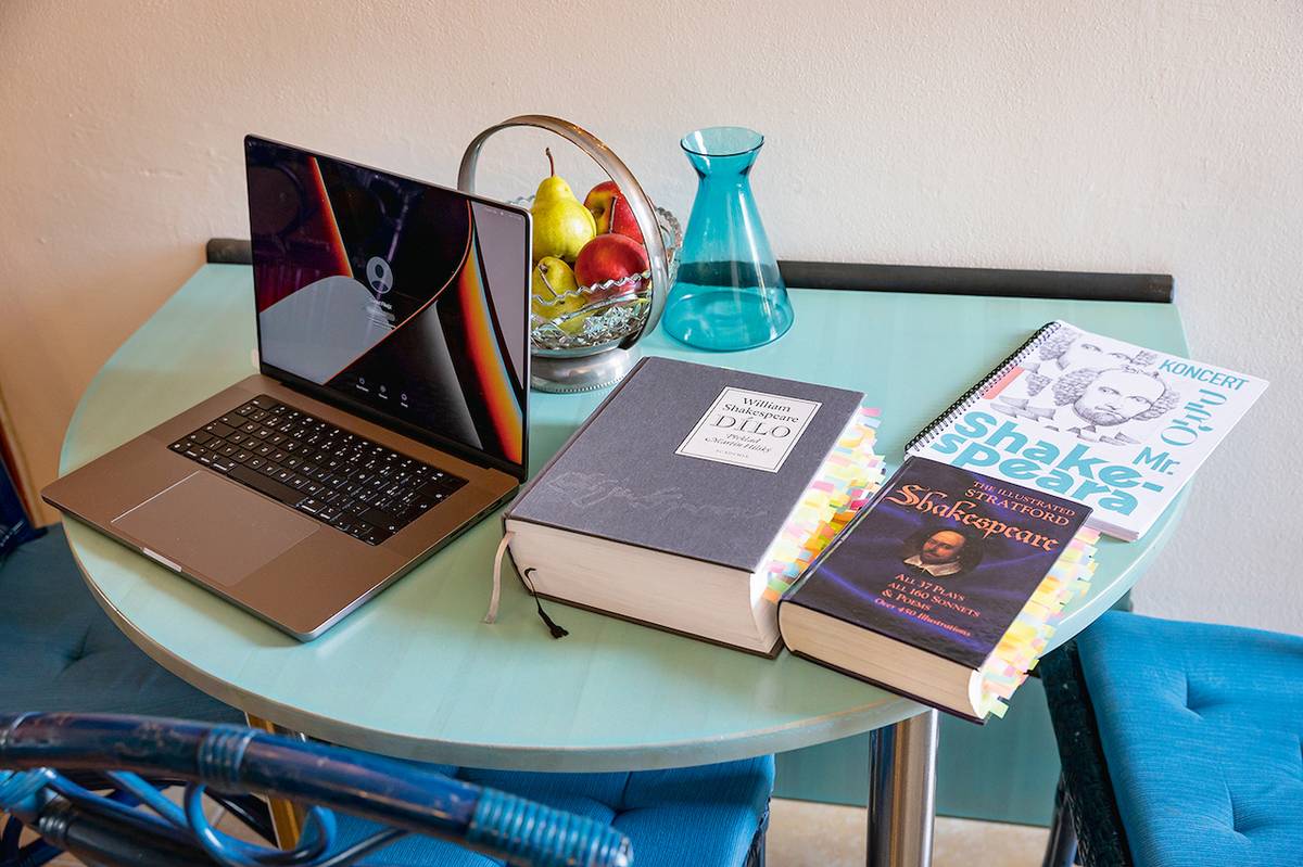 Stůl jsem vymyslel já. Má nezvykle pět noh, ale dá se složit, říká náš hostitel.