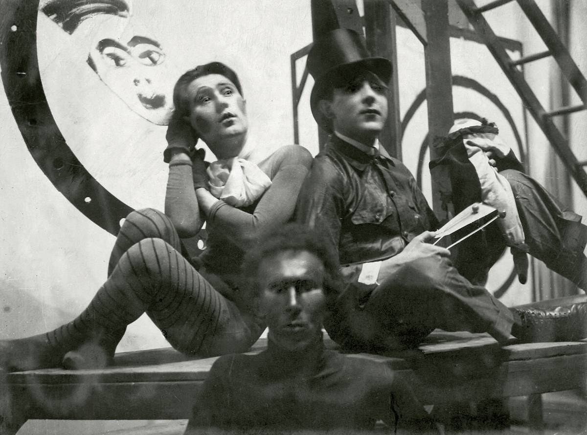 Inscenace Aristofanovy hry Když ženy něco slaví v divadle Na Slupi 1926. Karel Teige dole uprostřed.