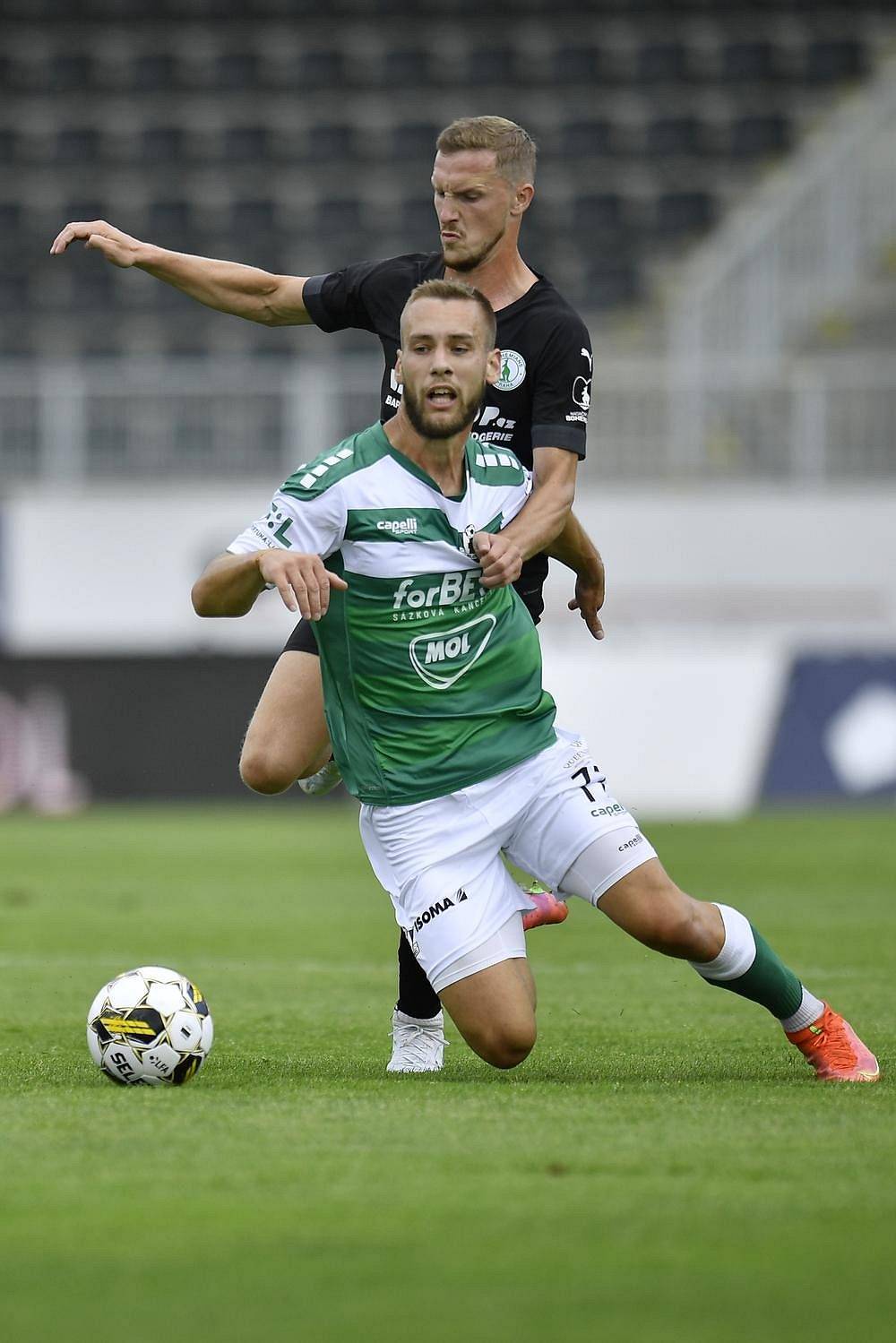 Miloš Kratochvíl z Jablonce (vlevo) a Petr Hronek z Bohemians v souboji.