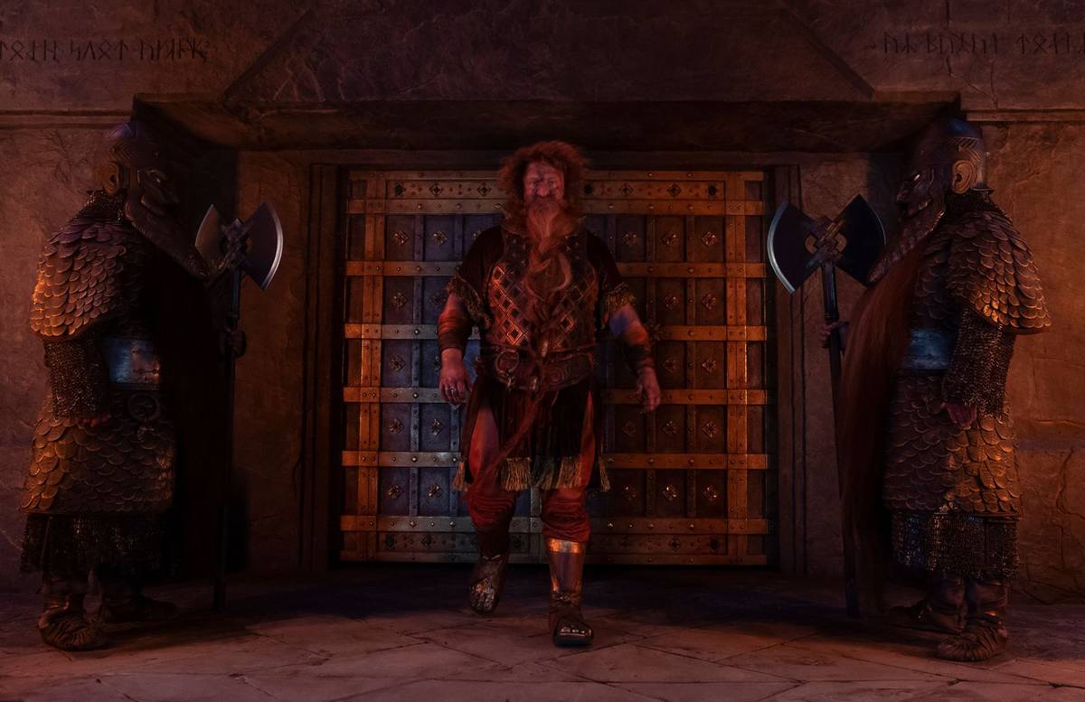 Pán prstenů: Prsteny moci se odehrává tisíce let před událostmi z trilogií Pán prstenů a Hobit. Na snímku tak není trpaslík Gimli, nýbrž Owain Arthur jako princ Durin IV. Připnout mu vousy a upravit vzezření maskérům před každým natáčením zabralo tři hodiny.
