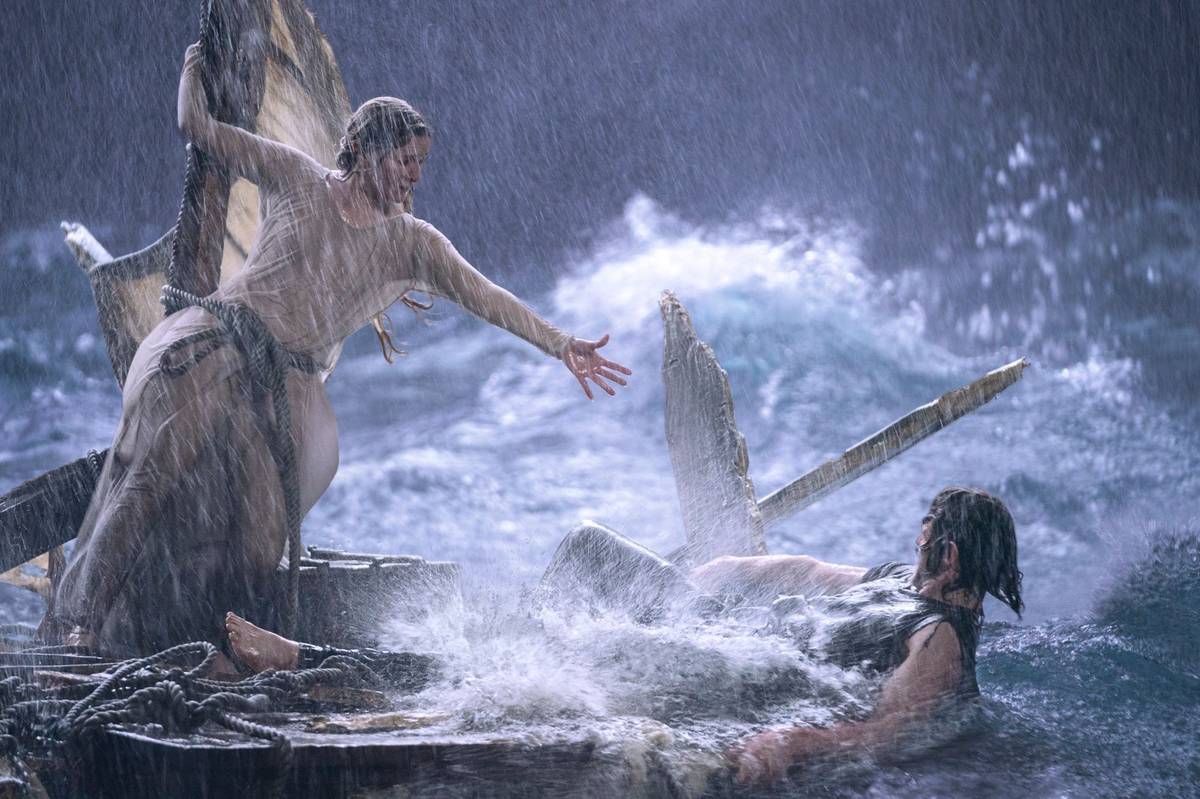 Charlie Vickers jako hraničář Halbrand. Tuto postavu si tvůrci seriálu vymysleli. S elfkou Galadriel se poprvé potká na voru, kterým zmítá rozbouřené moře.