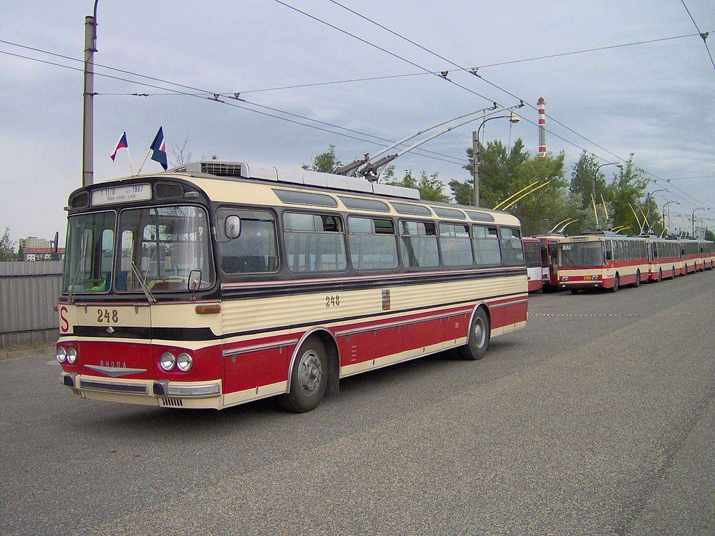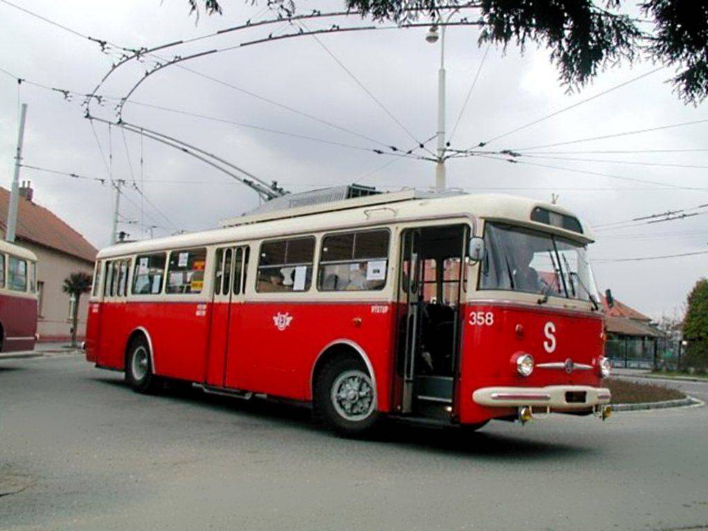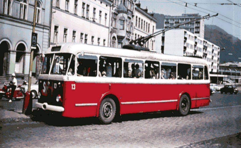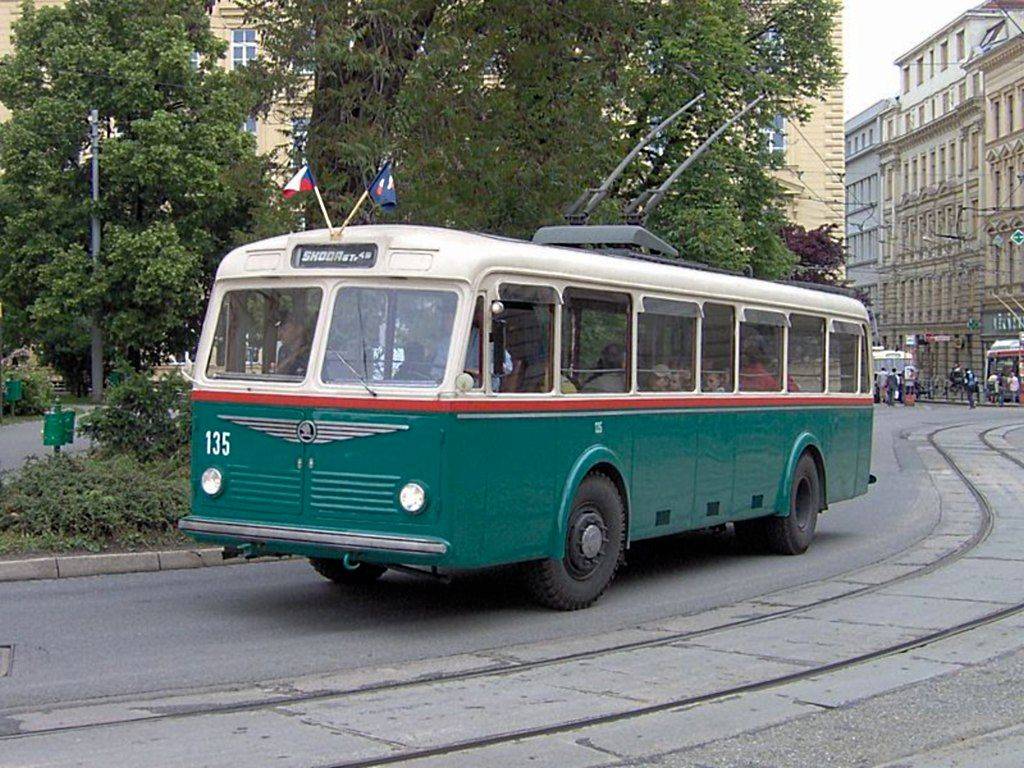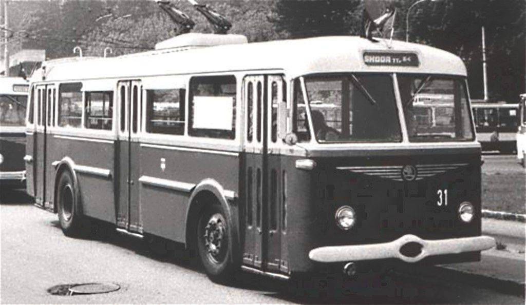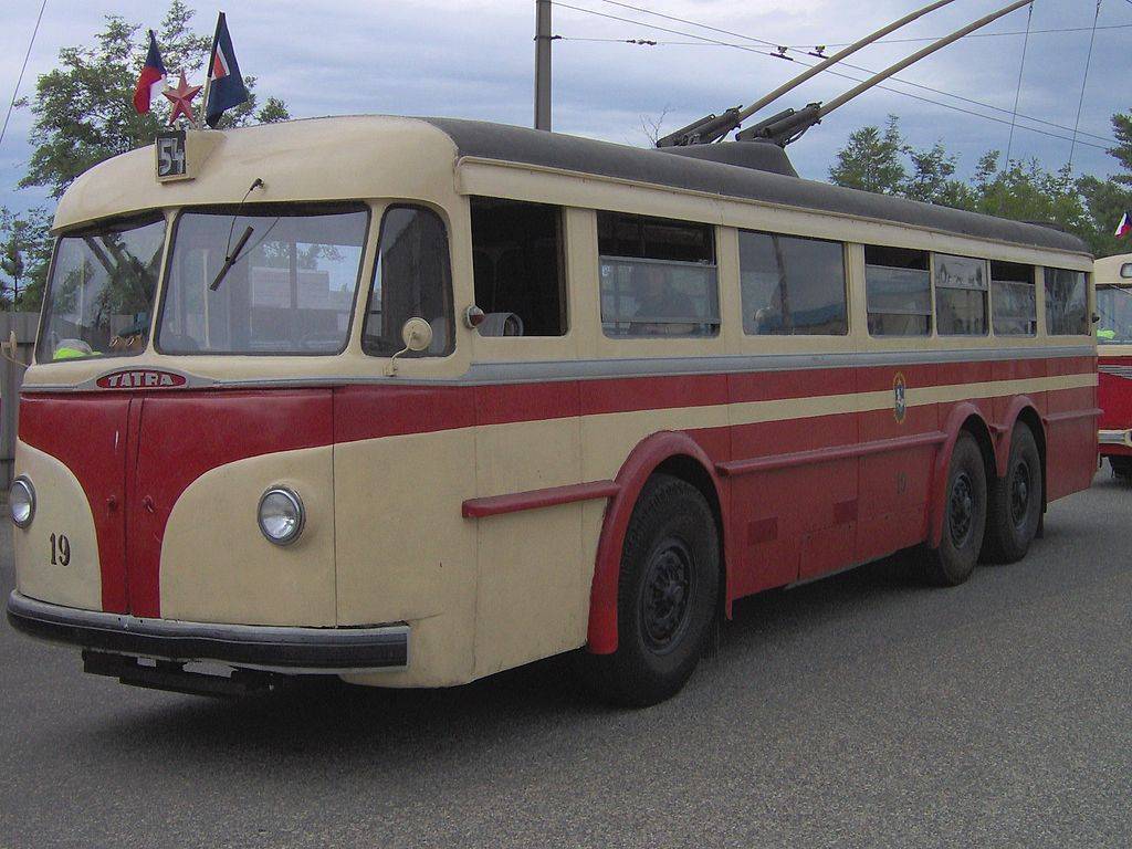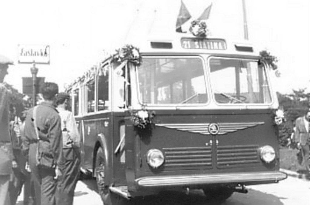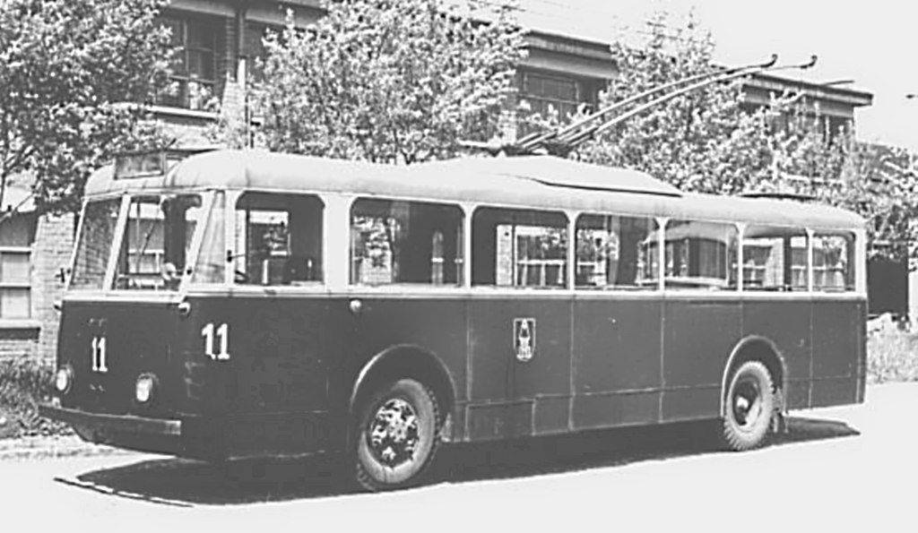 Historický trolejbus Škoda T 11, 60. léta. Na základě autobusu ŠM 11 vyrobila karosérii a podvozek Karosa Vysoké Mýto, elektrickou výzbroj Škoda z Ostrova nad Ohří.