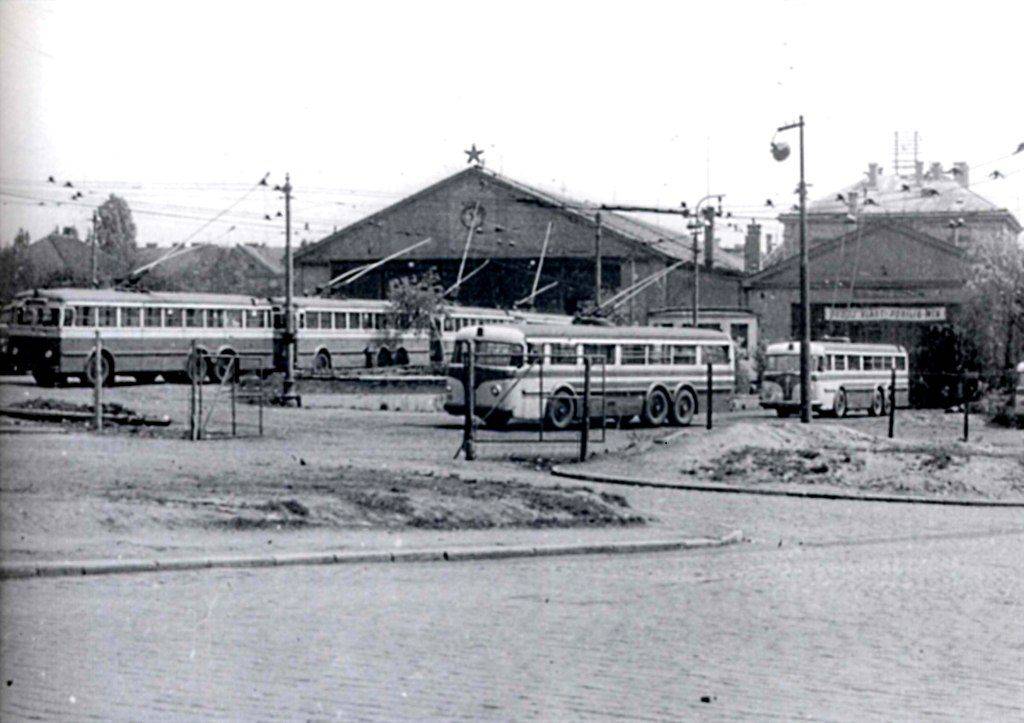 Mezi důvody, proč byly trolejbusy byly vytlačeny autobusy, byla tehdy levná nafta a svou roli prý sehrála i plánovaná výstavba podzemní dráhy. Podle některých hlasů hrála roli také skutečnost, že autobusy, nezávislé na drátech, byly lépe využitelné pro případnou evakuaci obyvatelstva. Za energetické krize koncem 70. let se ale ukázalo, že zrušení trolejbusů nebylo příliš šťastné rozhodnutí, na rychlou obnovu provozu ale nešlo ani pomýšlet, neexistoval ostatně ani vhodný vůz. Na snímku trolejbusy ve Vinohradské vozovně.