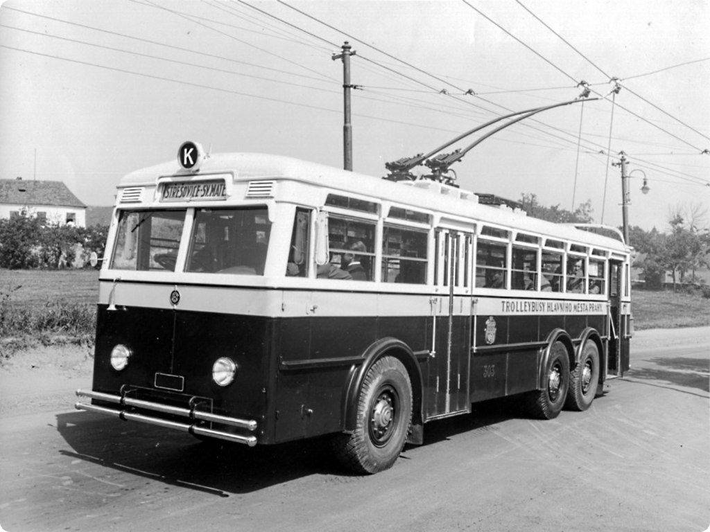 V říjnu 1939 přibyla druhá trať, plánovaná už před okupací, která vedla ke zbrojovce v Jinonicích poté byla prodloužena až na Václavské náměstí. Trolejbus Tatra v centru Prahy, 40. léta.