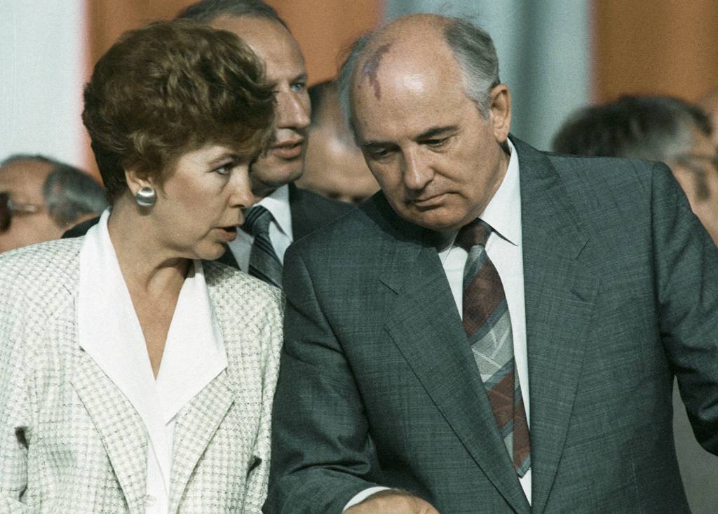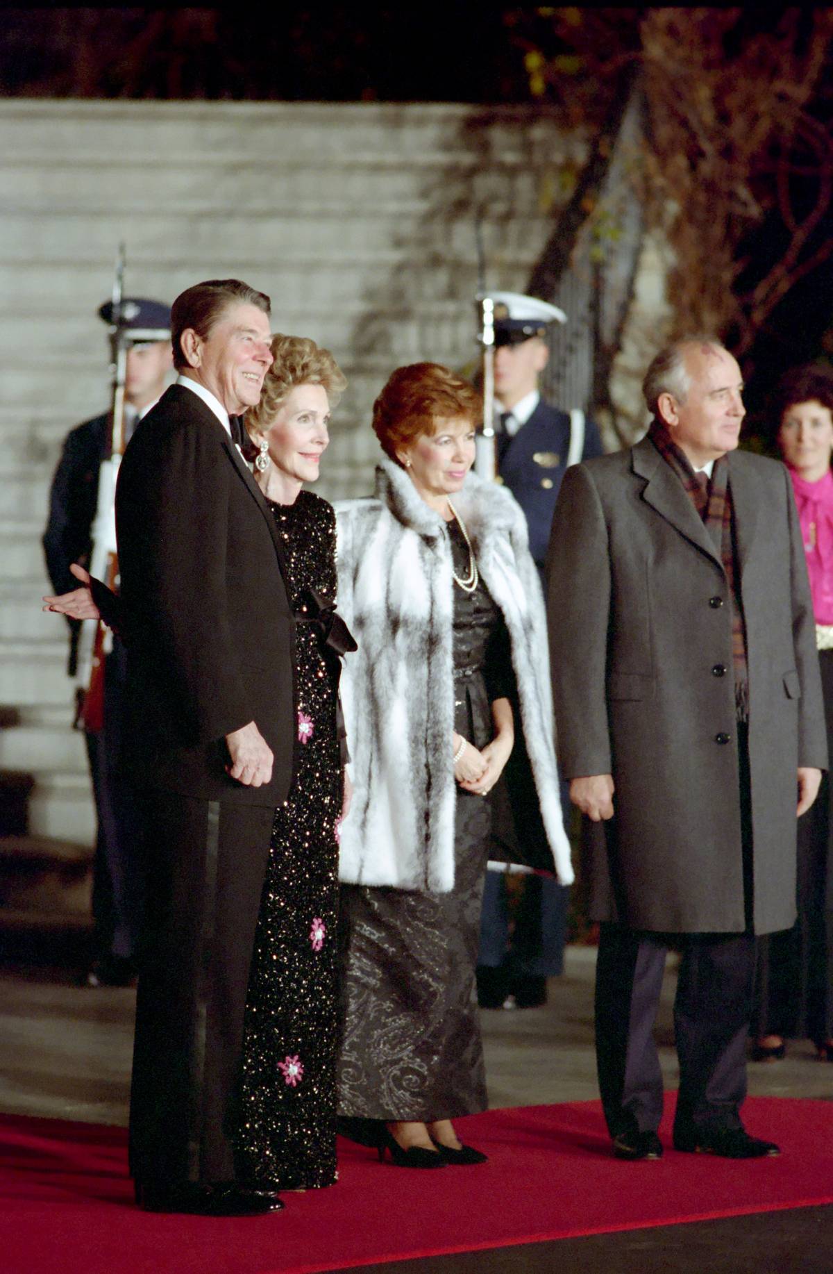 V Moskvě potkala studenta práv Michaila Gorbačova. Byl rok 1951 a Raisa právě prožila náročný partnerský rozchod. Neměla zájem o nový vztah. Ale Michail se zamiloval. Nehodlal se jí vzdát. (Na snímku manželé Gorbačovovi s Reaganovými, prvním párem USA, během návštěvy Spojených států v roce 1987.)