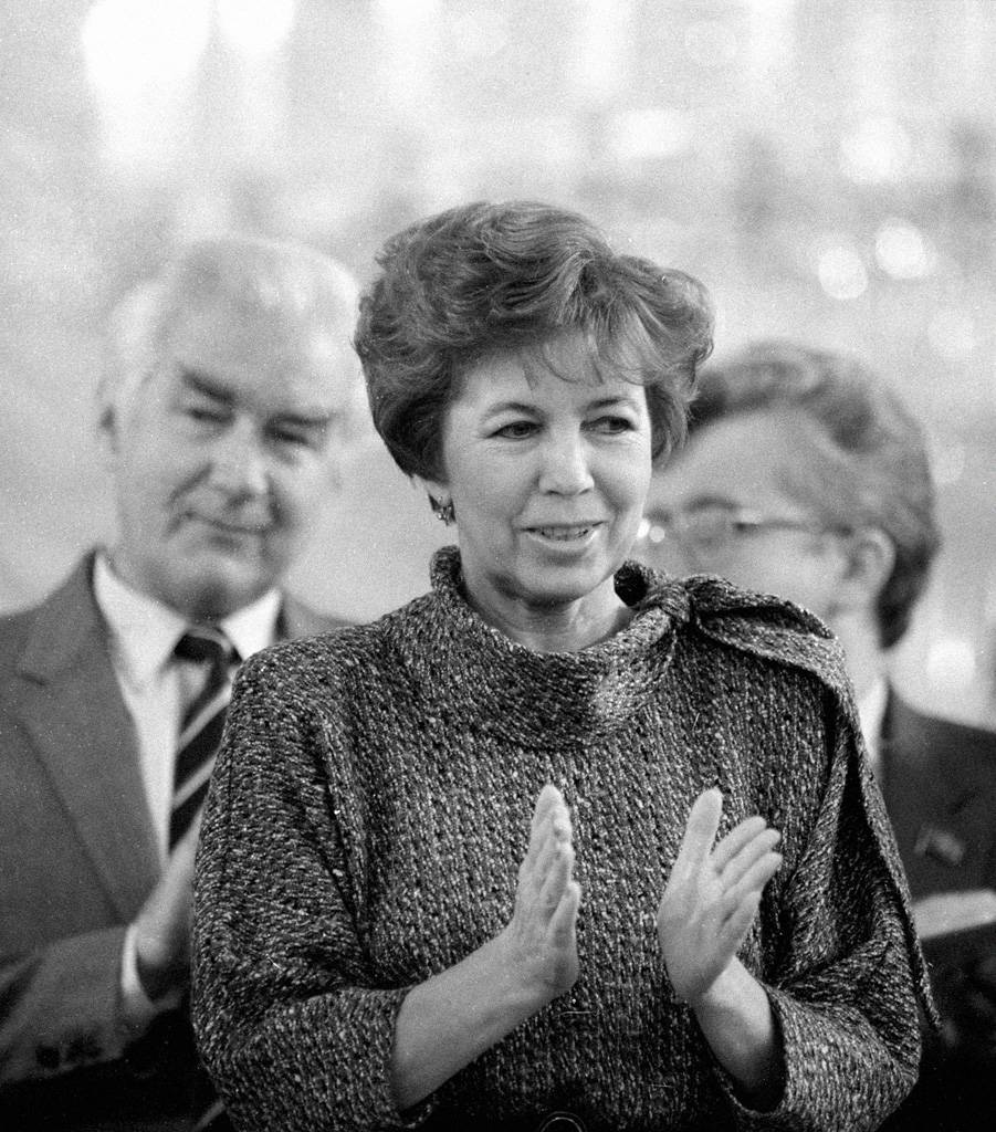 Raisa Gorbačovová v roce 1989. Původně vystudovala filozofii, kterou později vyučovala: přednášela o Hegelovi, Kantovi a Leninovi.