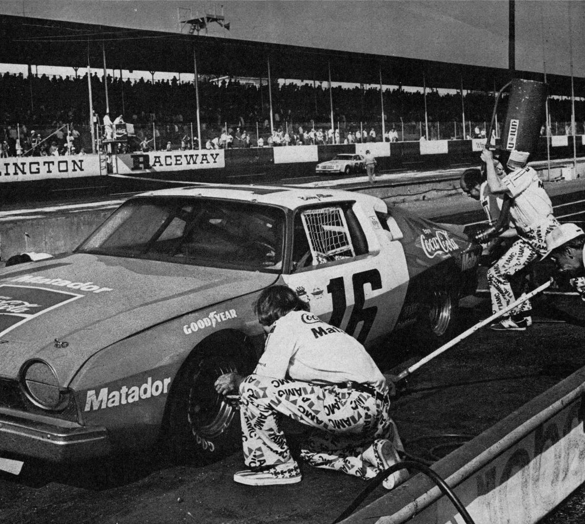Bobby Allison vyhrál stock cars pro Penskeho v Riverside 1975 (AMC Matador)