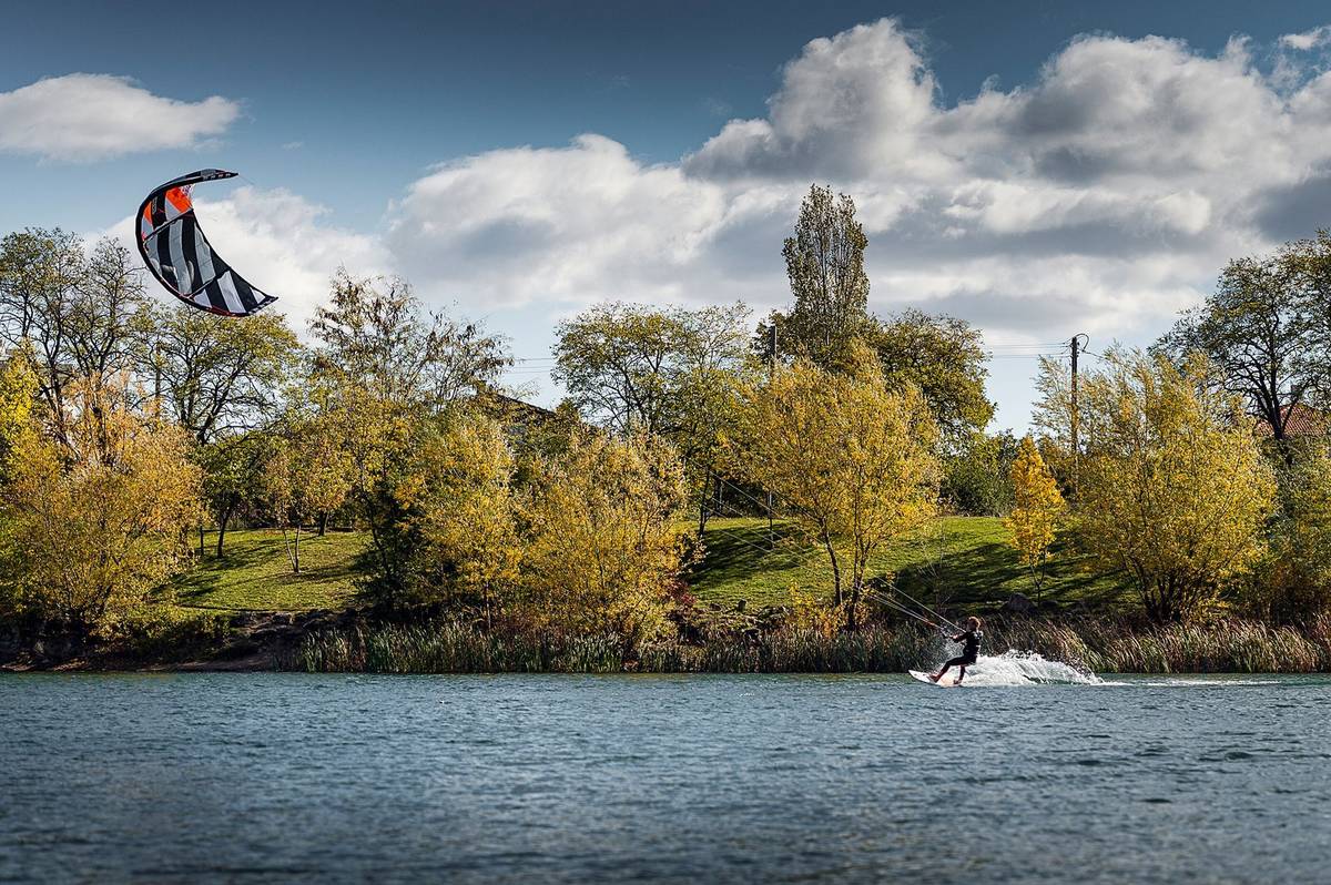 Ivajlo Dončev: Kitesurfufer Nikola Abadžiev předvádí své umění v Sofii (Bulharsko, říjen 2020).
