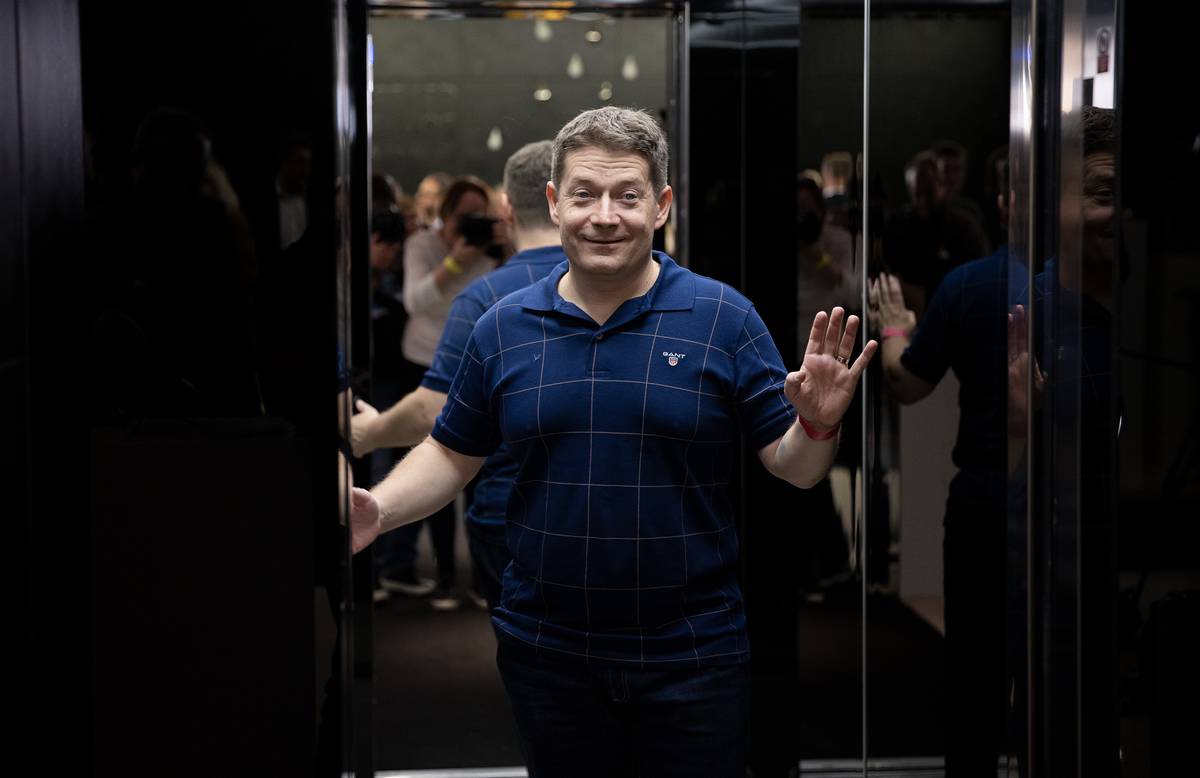 Kandidát Spolu Bohuslav Svoboda přichází do volebního štábu.