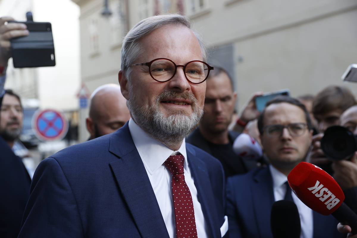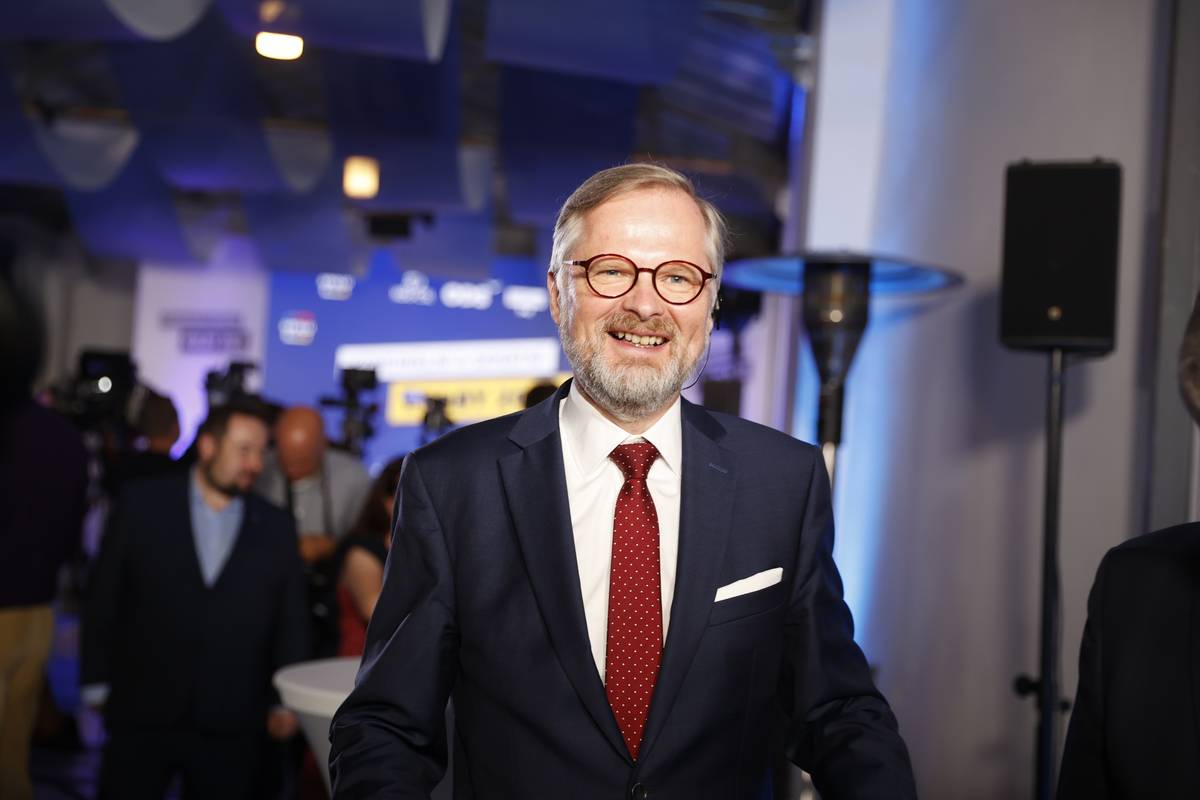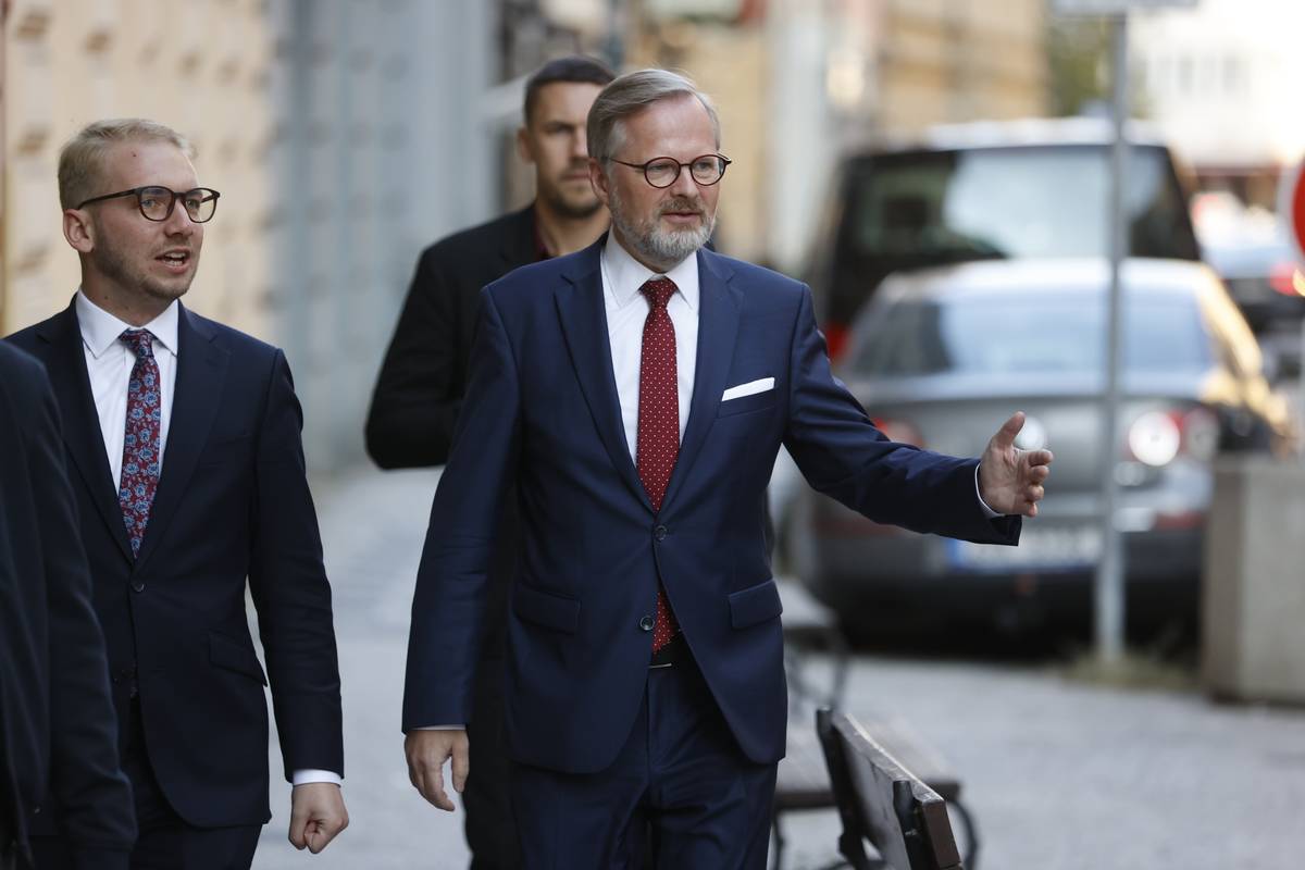 Premiér a předseda ODS Petr Fiala přichází do volebního štábu Spolu.