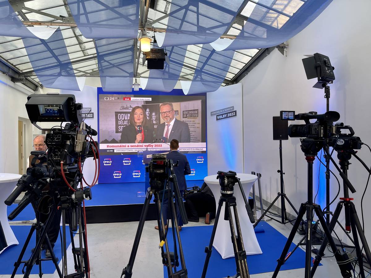 Volební štáb Spolu v Truhlářské ulici v Praze.