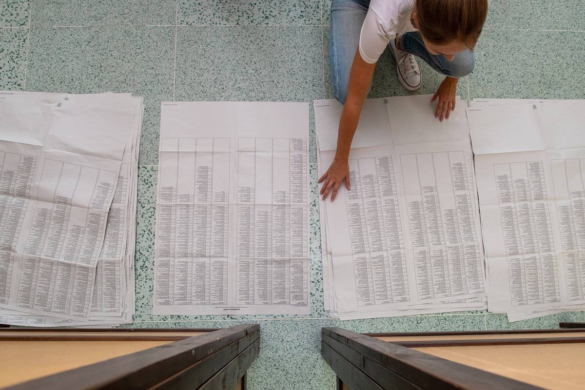Sčítání hlasů u volební komise na Základní škole Brdičkova v Praze - Lužinách.