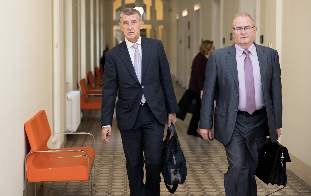 Tento týden pokračuje proces s bývalým premiérem Andrejem Babišem kvůli farmě Čapí hnízdo. Na snímku Babiš se svým advokátem Michaelem Bartončíkem.
