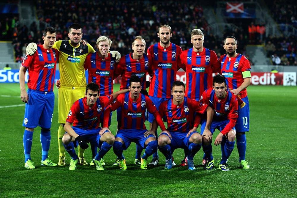 Fotbalisté Viktorie Plzeň před utkáním Ligy mistrů s Bayernem ve Štruncových sadech.