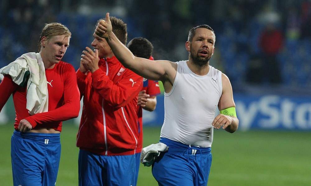 Kapitán Plzně Pavel Horváth po domácím zápase s Bayernem děkuje fanouškům.