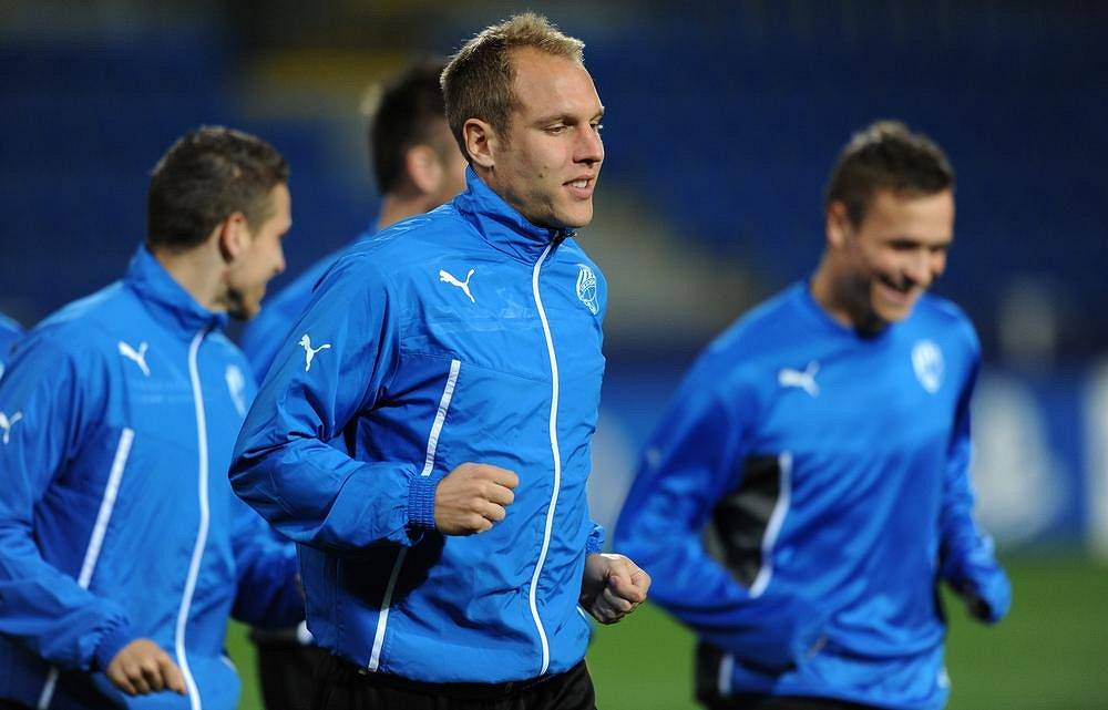 Záložník Viktorie Plzeň Pavel Horváth během tréninku před úterním utkáním Ligy mistrů s Bayernem Mnichov.