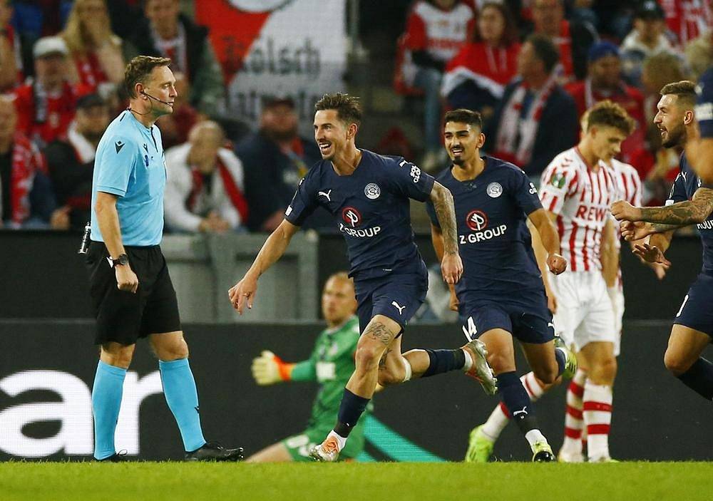 Fotbalisté Kolína nad Rýnem se radují z gólu