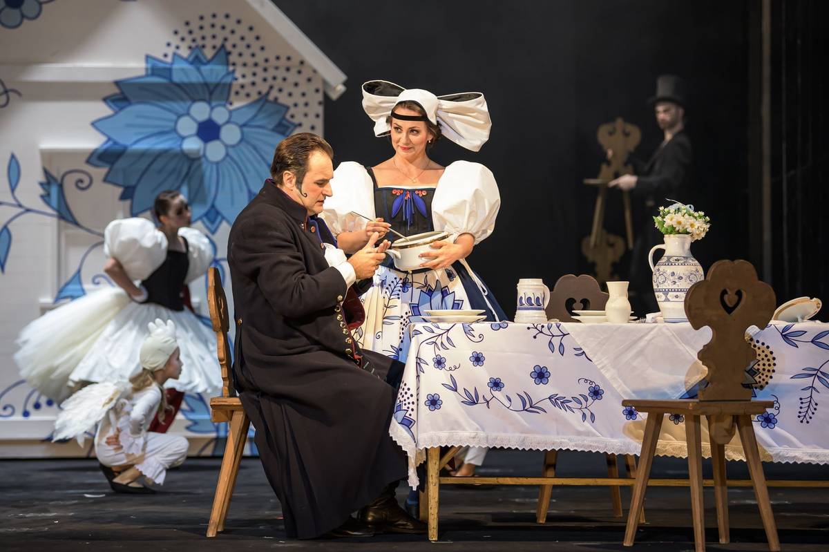 Na snímku z nového Švandy dudáka v pražském Národním divadle jsou Alžběta Poláčková jako Dorotka a Jiří Brückler coby Švanda.