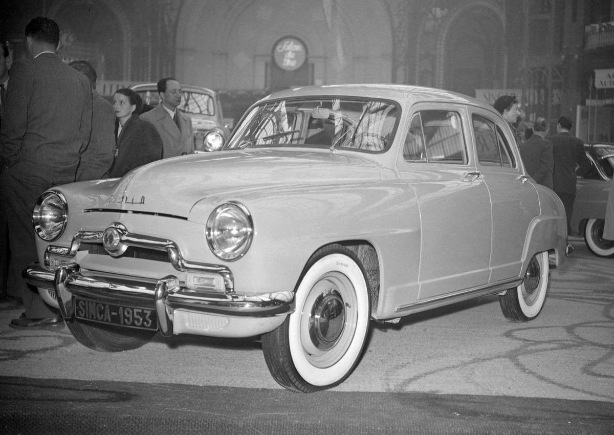 Pařížský autosalon v říjnu 1951 a premiéra nového automobilu Simca 9 Aronde se samonosnou pontonovou karoserií a benzinovou dvanáctistovkou pod kapotou.