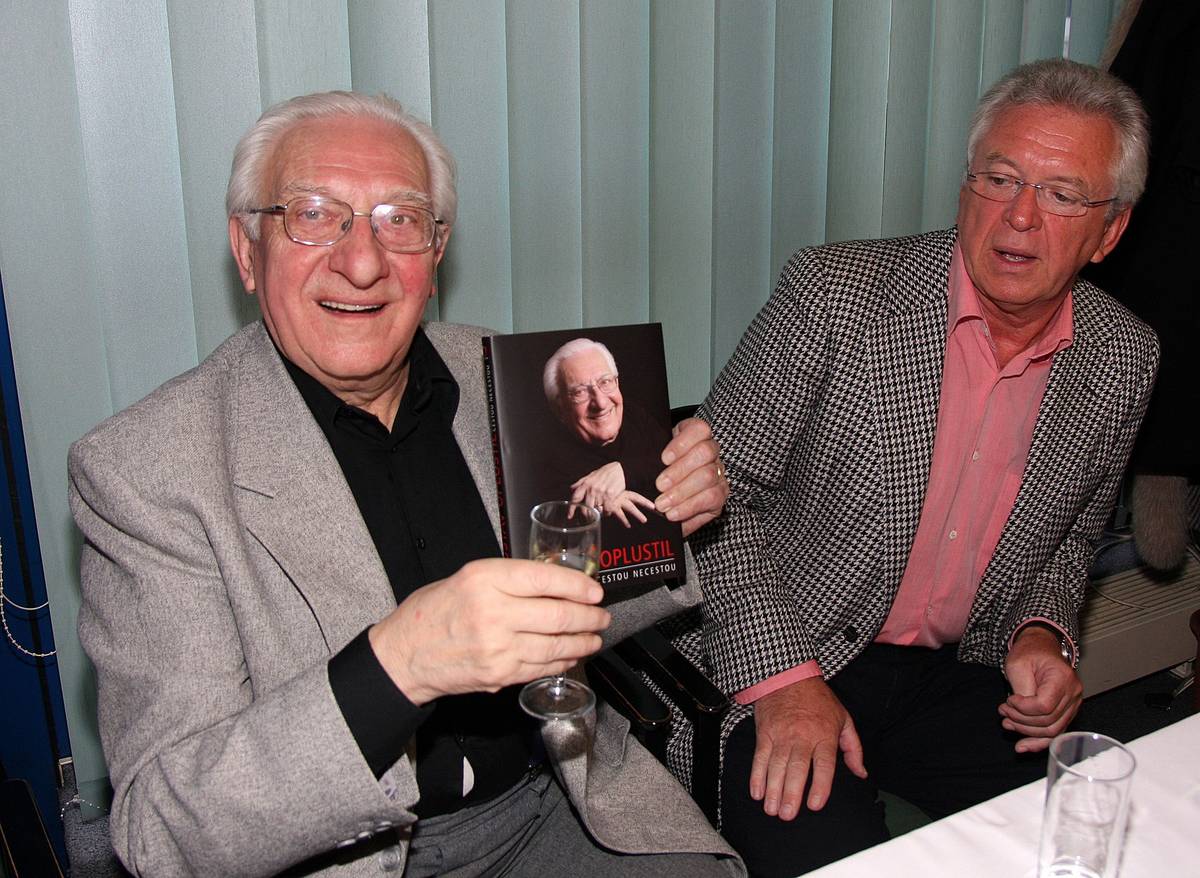 Gustav Oplustil (vlevo), in memoriam, medaile Za zásluhy I. stupně, český televizní a rozhlasový scenárista, dramaturg, režisér a příležitostný herec malých rolí.