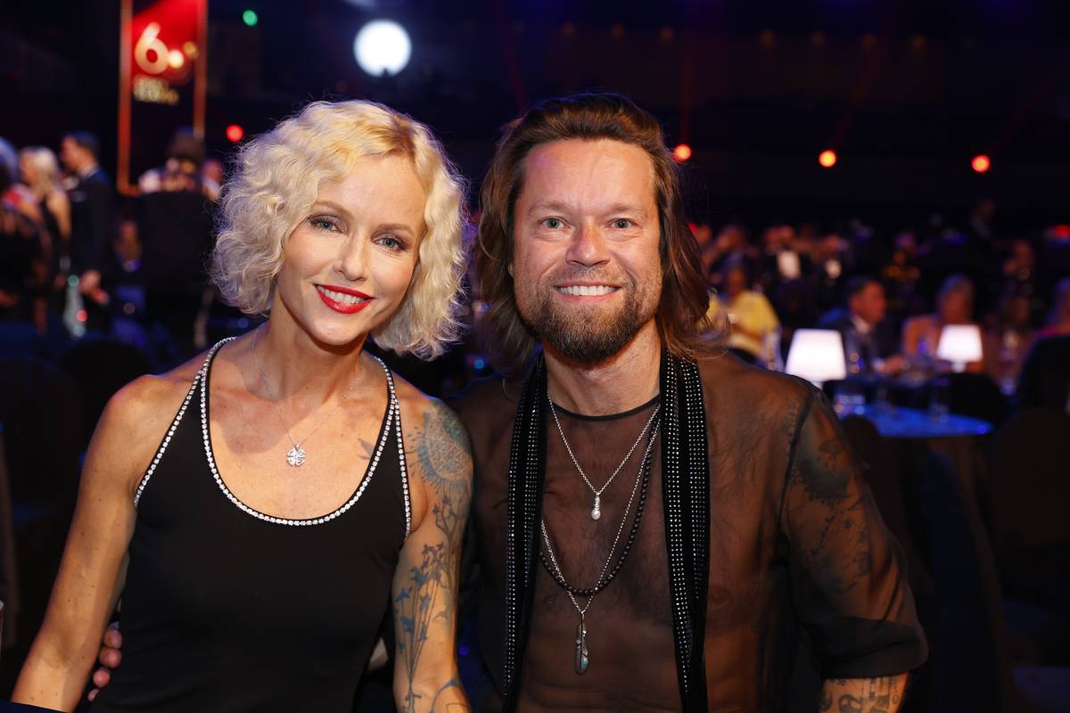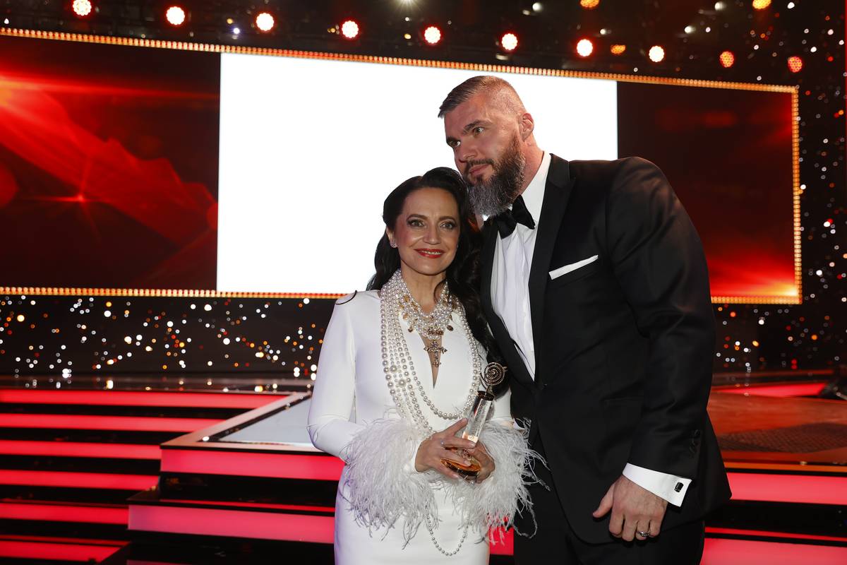 Lucie Bílá s partnerem Radkem Filipim. Z pražského ceremoniálu si odvezla hned dvě ceny, včetně té nejvyšší.