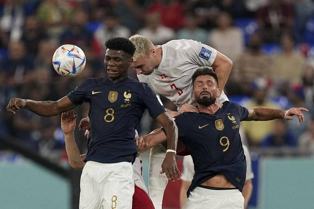 Francouz Olivier Giroud během zpracování nahrávky v duelu proti Dánsku.