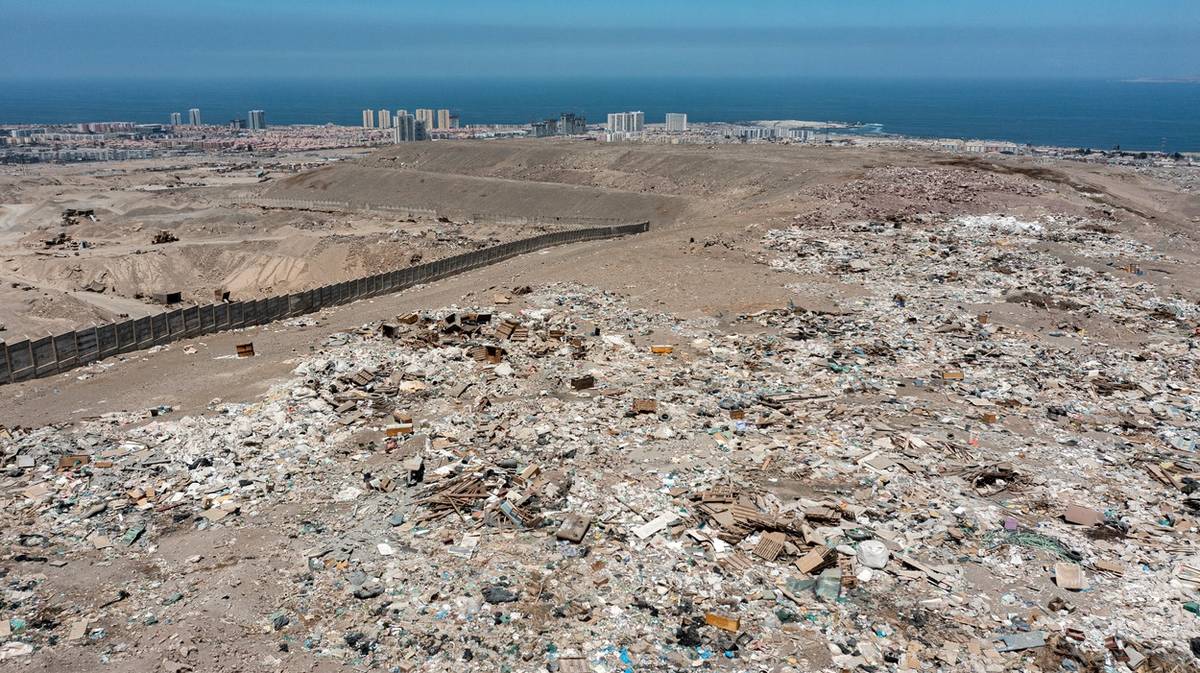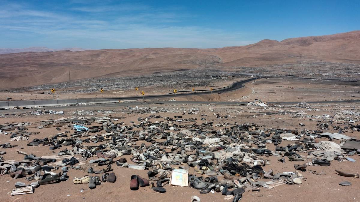 Hory vyřazeného oblečení, hřbitov bot a řady sešrotovaných pneumatik a aut ničí nejméně tři oblasti pouště na severu Chile.