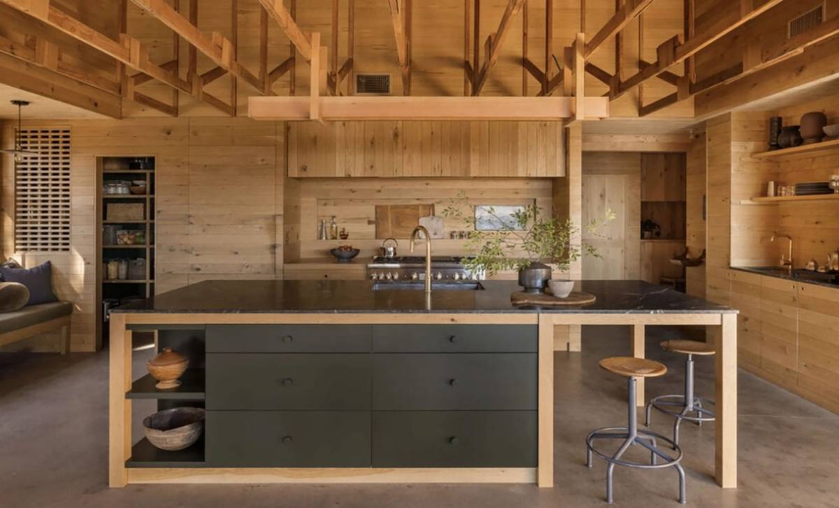 Interiér domku je zařízený v příjemném rustikálním stylu.