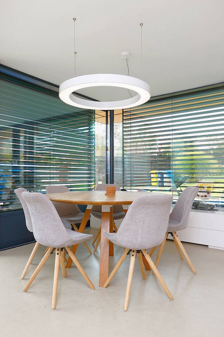 Kolem jídelního stolu je dostatek místa, světla i prostoru na vystavení oblíbených kousků.