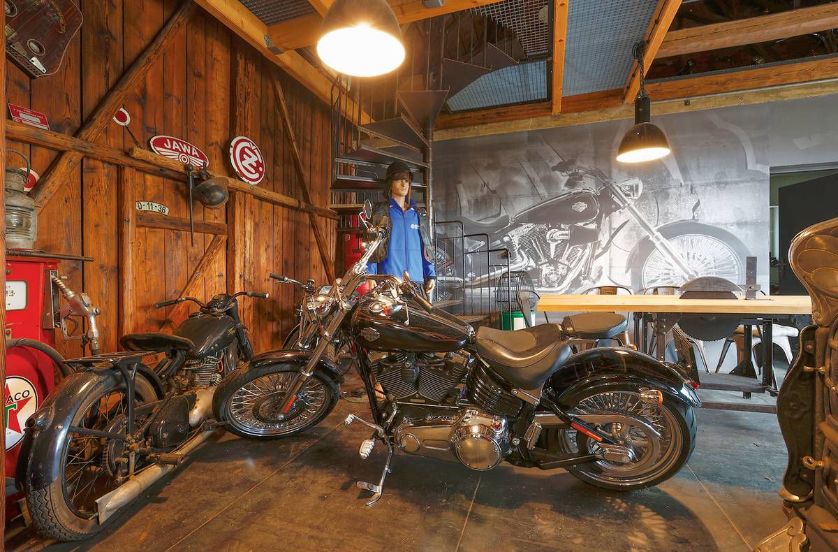 Proměnu stodoly na muzeum motorek nakreslil architekt a je to znát.