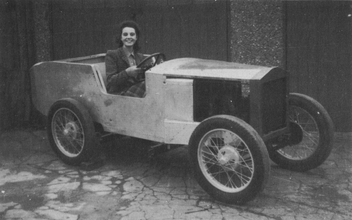 Chapmanova manželka Hazel za volantem prvního Lotusu Mk. I (upravený Austin Seven) v roce 1948
