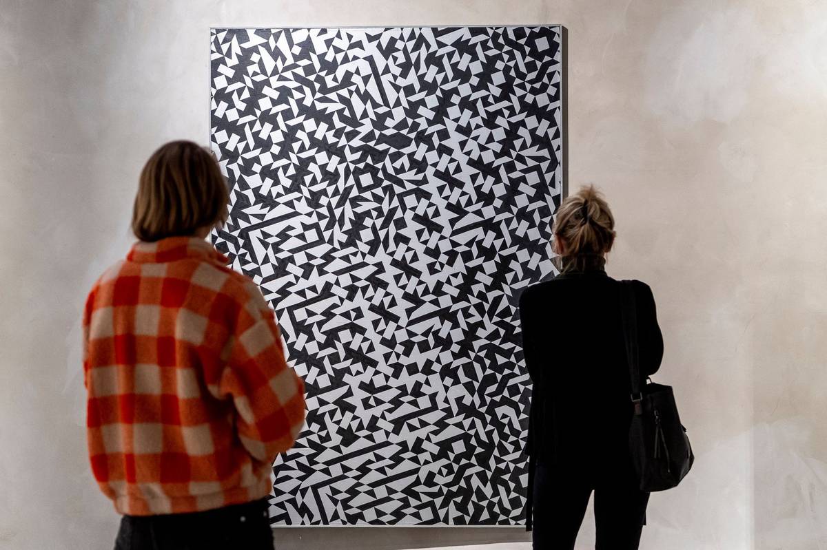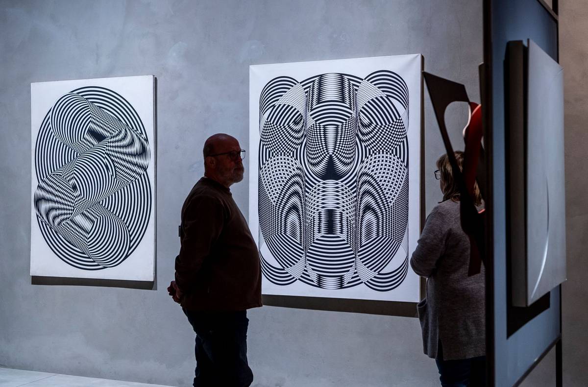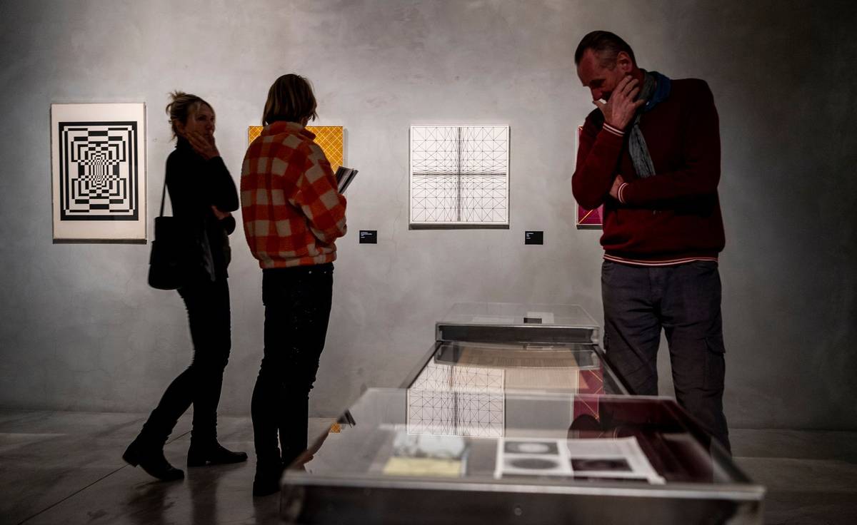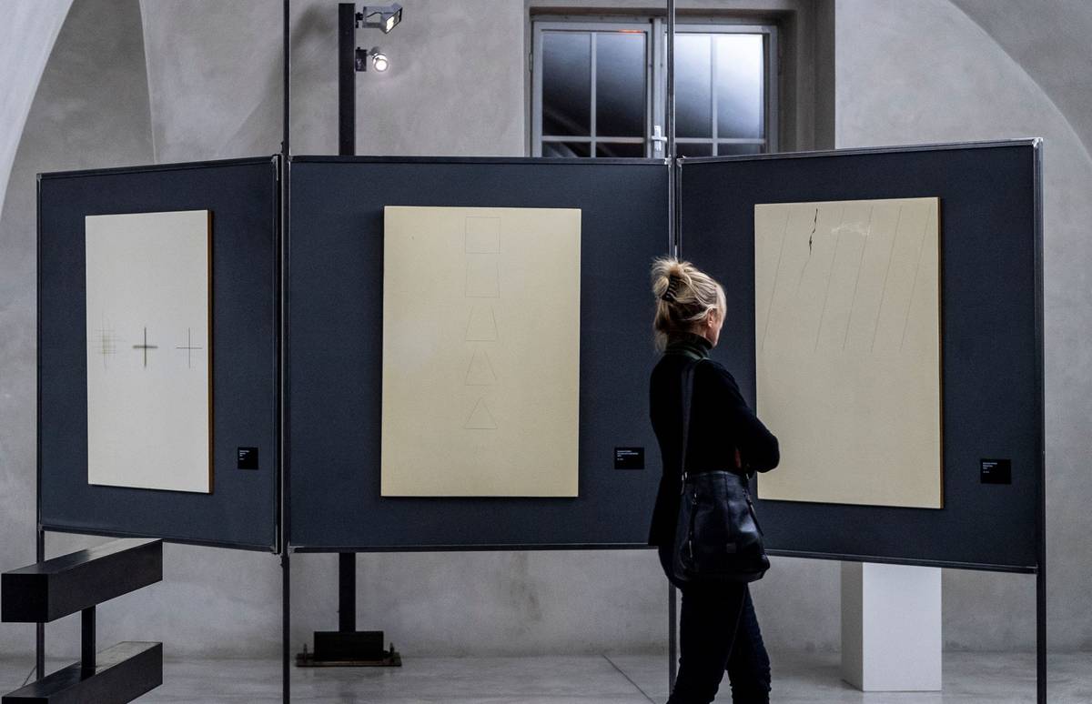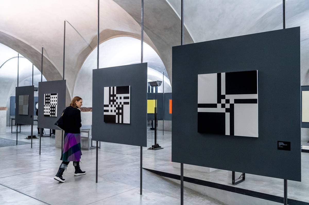 V popředí jsou obrazy Systém adice v pozitivu - negativu I-III z roku 1970 od Jana Kubíčka.