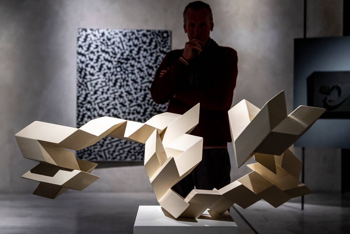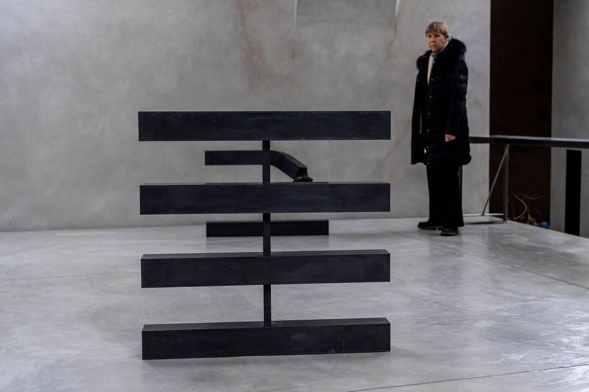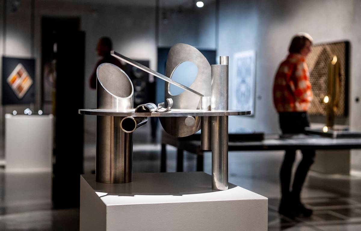 V popředí je plastika Bílá struktura z roku 1966 od Zdeňka Sýkory.