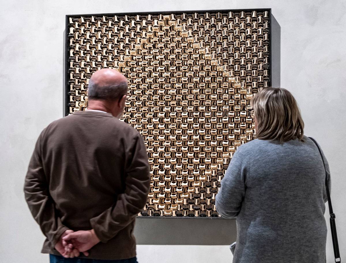 Obraz Optický relief I z roku 1967 od Jiřího Hilmara.