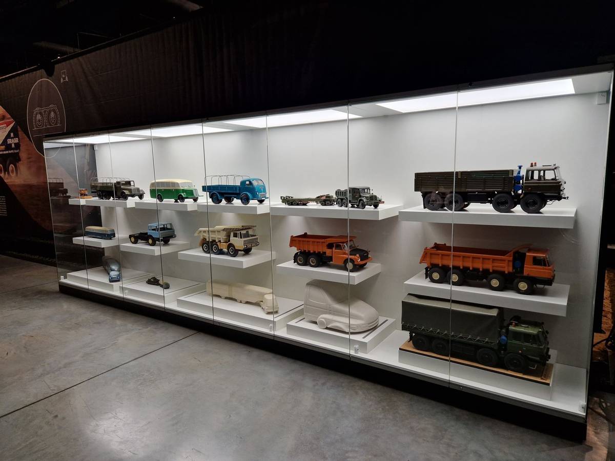 Vitrína s modely nejrůznějších nákladních modelů Tatra. I hračičkové si tak přijdou na své.