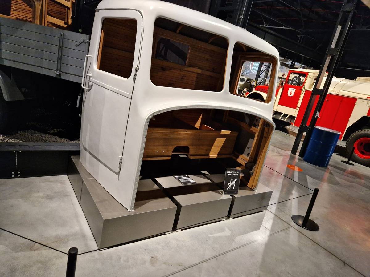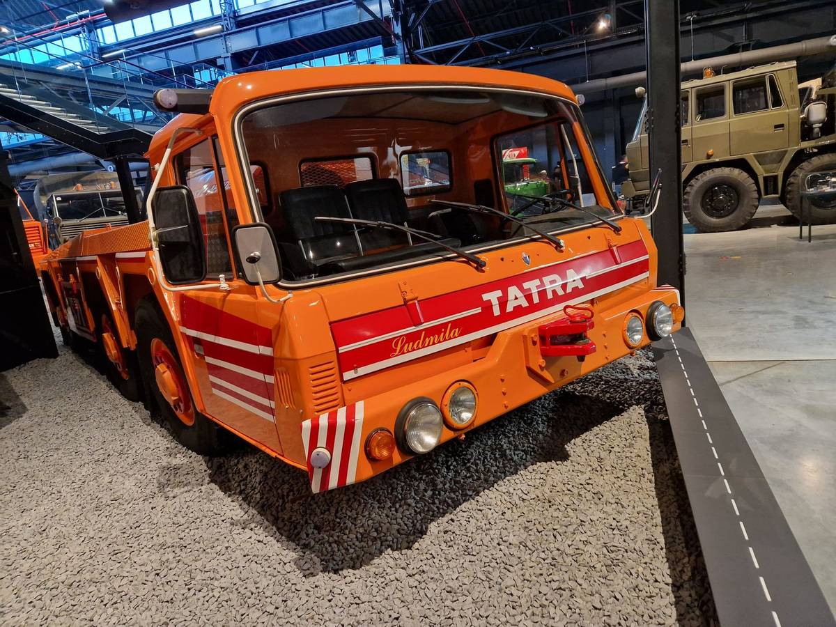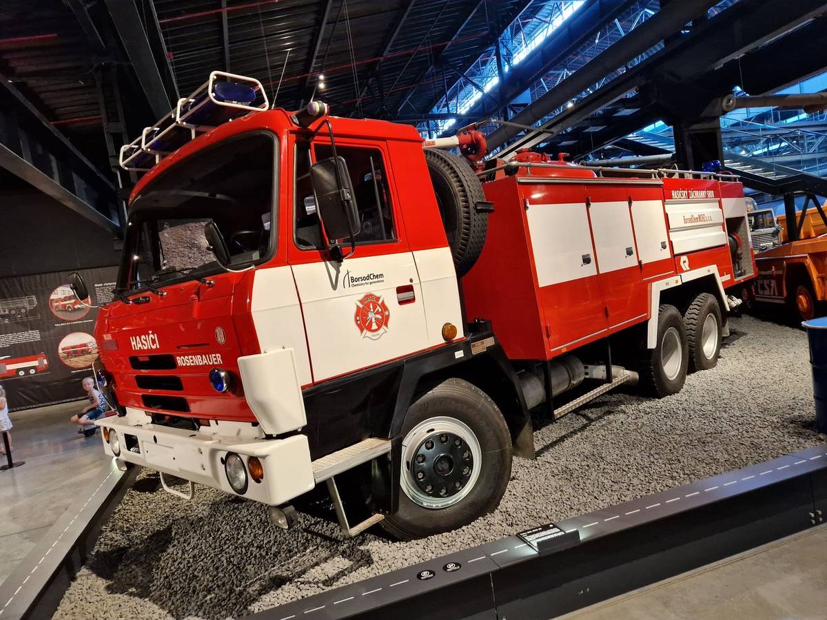 Muzeum je rozděleno do několika tematických celků, pokrývajících vše od prvních nákladních aut z Kopřivnice přes malá nákladní auta, legendární typy T111 nebo T138, nerealizované prototypy, expediční vozidla až po hasičské modely. Mezi ně spadá třeba tato Tatra 813 8x8, která má speciální nástavbu, do které se vedle vody vejde i šest tisíc litrů pěnidla. Nepřekvapí, že tento kolos byl vyroben pro bratislavský petrochemický podnik Slovnaft.