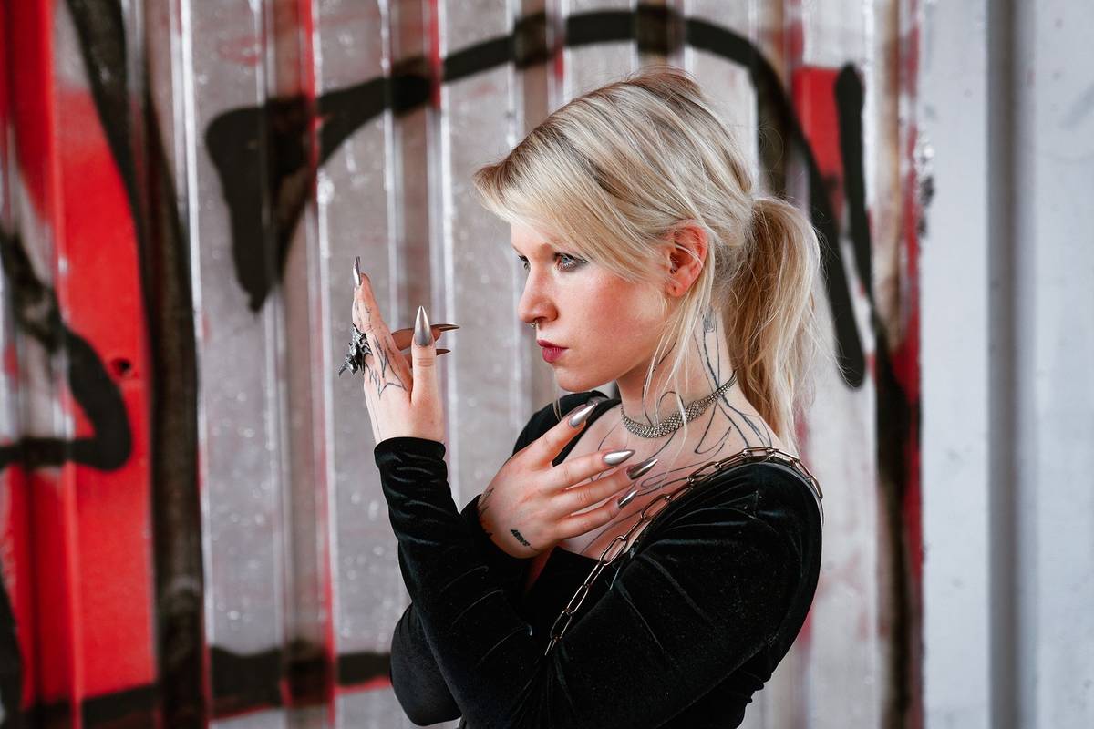 Portrét raperky Arlety. Hodně se o ní mluví, je prý ztělesněním nové energie, která detoxikuje mužský rap v Česku. Praha, srpen 2022.