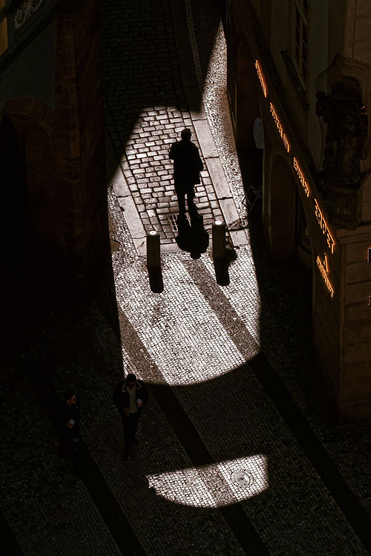 Magie pražského světla a stínu. Pohled z věže Staroměstské radnice do Melantrichovy ulice (březen 2022).