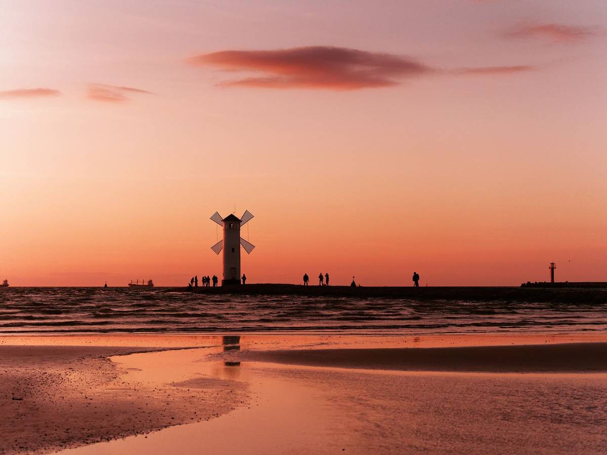 Maják ve Svinoústí za západu slunce. Krajinářskou fotografii mám rád a moře miluju.