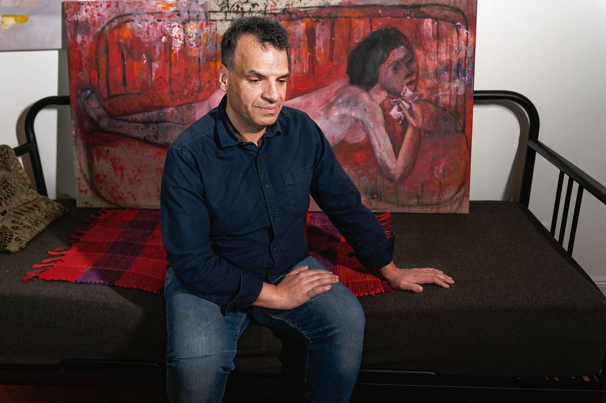 S česko-britským malířem Tiborem Červeňákem je pro mě spojený velký příběh. V době sametové revoluce jsem byl v Krnově jeho vychovatelem v dětském výchovném ústavu. Po revoluci jsem se stal novinářem, on se vypracoval na vynikajícího umělce a vystudoval prestižní vysokou školu výtvarných umění v Londýně. V době pandemie maloval v Praze, momentálně už je zpět v Británii. Snímek ho zachycuje v jeho pražském ateliéru v lednu 2022.