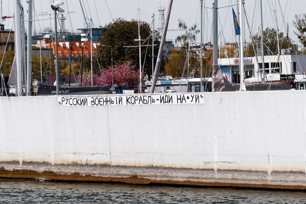 Jedním ze symbolů odporu obránců Ukrajiny proti agresi Ruska se stala věta "Ruská válečná lodi, běž do p...le!", která zazněla 24. února 2022 od obránců Hadího ostrova. Tady je v původním znění napsána na zdi přístavu v polské Gdyni (snímek vznikl v květnu 2022).